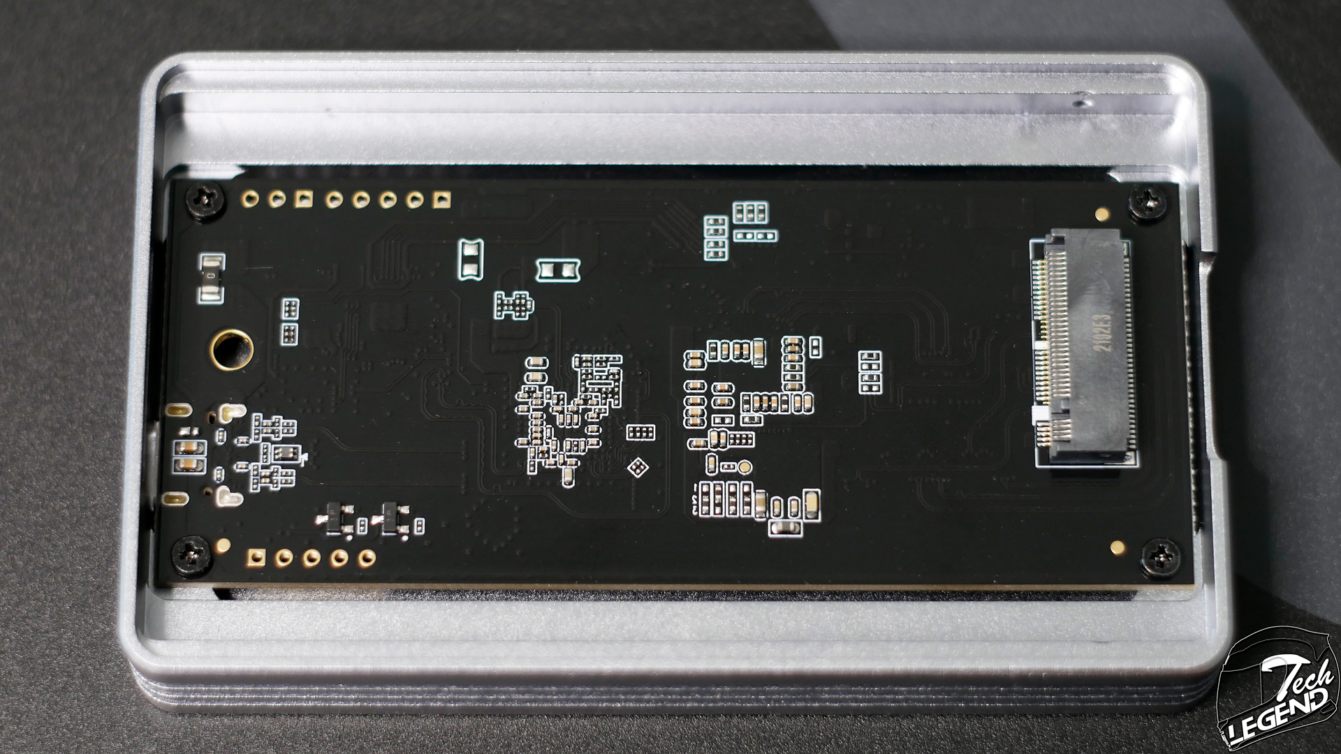 The controller used on this enclosure is made by Realtek and is the model RTL9210B. This controller is what adapts the M.2 socket to the USB type C connector.