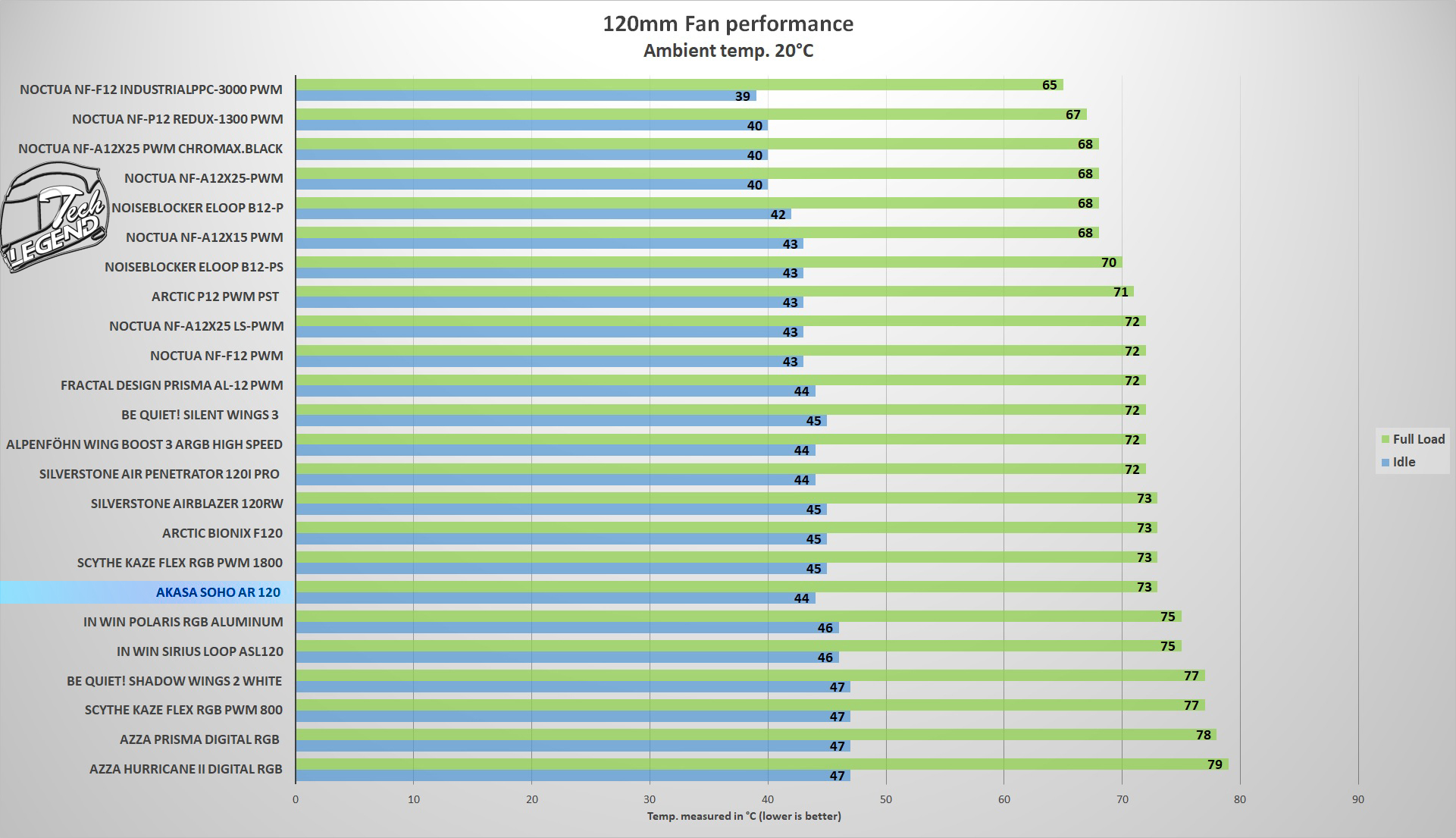 In terms of the performance, the Akasa Soho AR 120 is on the same level as many mid and upper range fans that do not use specific bearings or technologies meant to increase the static pressure. However, with a speed of 2000RPM, the performance should have been better, especially on a radiator.
