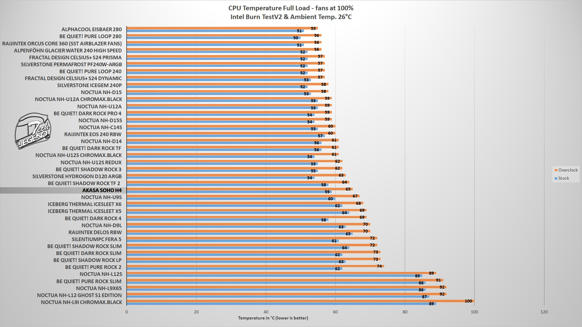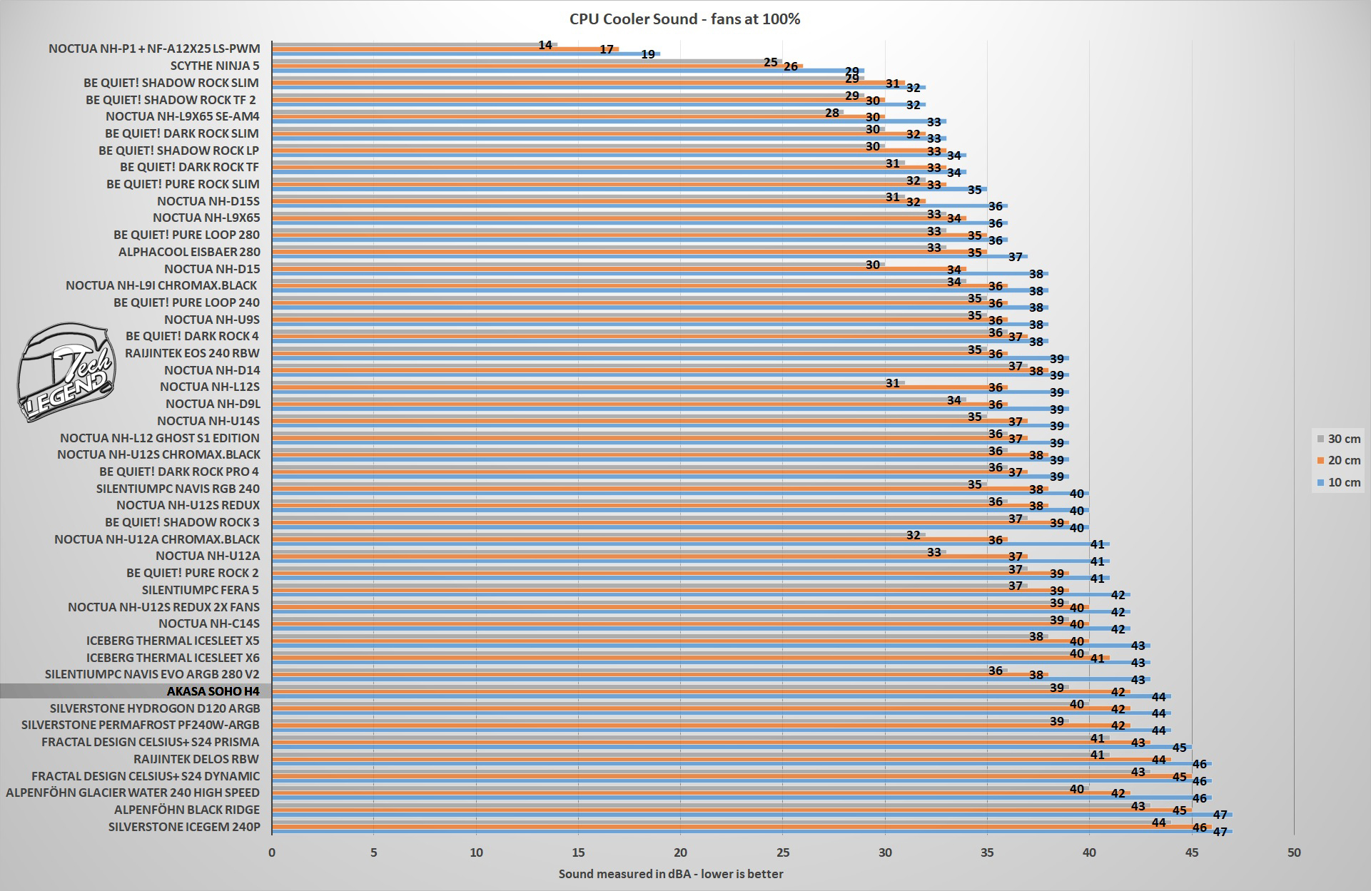 The Akasa Soho H4 is an interesting CPU cooler. It has a good build quality and a great 120mm fan. However, it also has a few shortcomings, starting with the usage of a direct touch heatpipe design for the baseplate. While not a dealbreaker, it is not as good as a solid copper made baseplate, because the heatpipes will create irregularities in the surface.