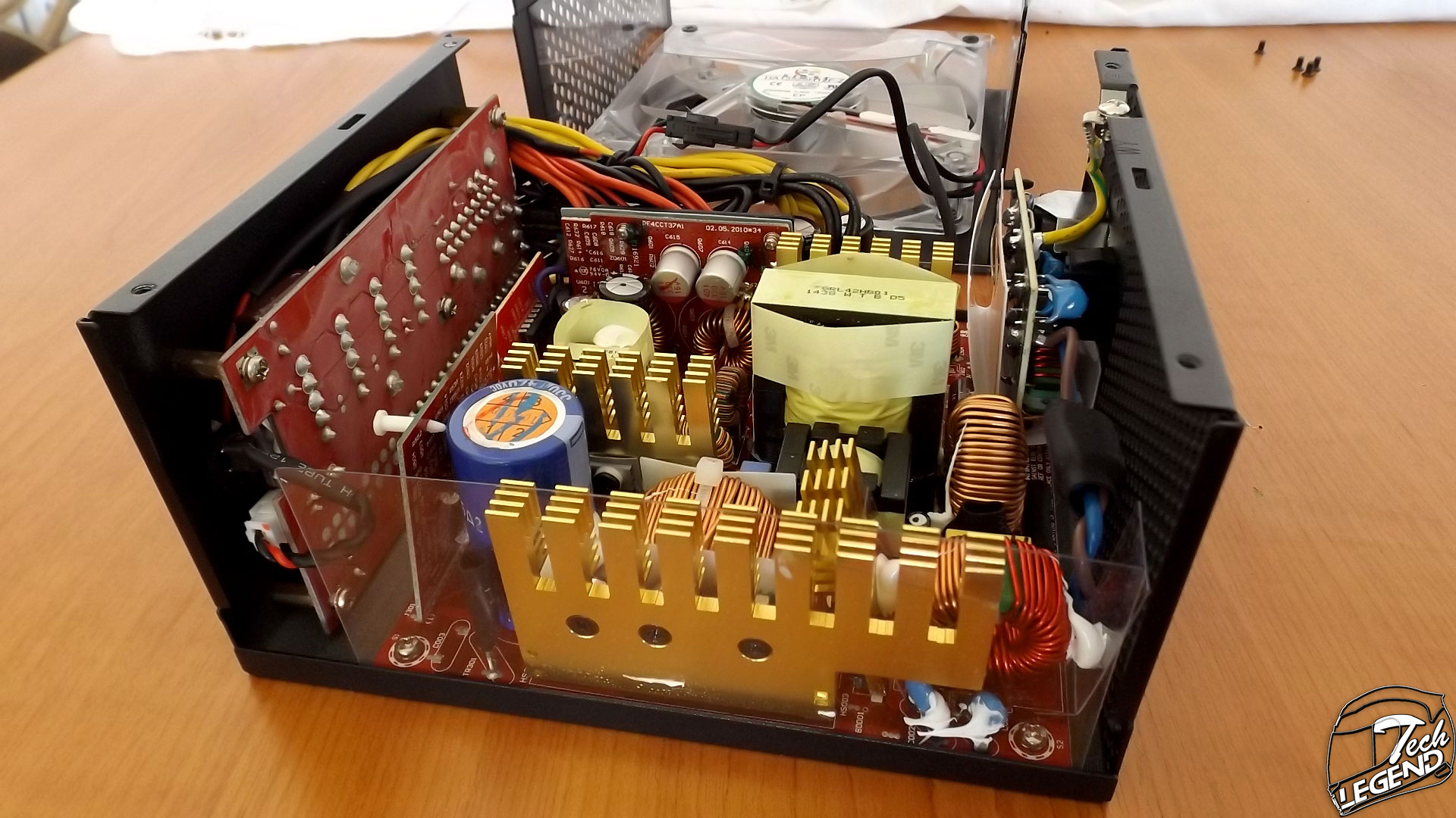 The electronic in the case of the Edge series is manufactured by Seasonic, the platform of the Edge line being based on the platform of the G Series line from Seasonic. The components are being passively cooled by four gold heatsinks.
