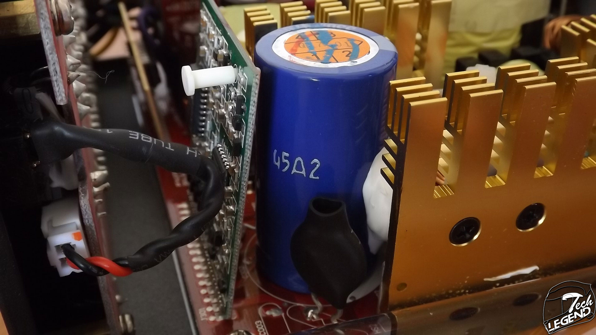 In the APFC section we find installed a Hitachi made capacitor with the following spec: 330μF/420V, next to it we have a filtering coil.