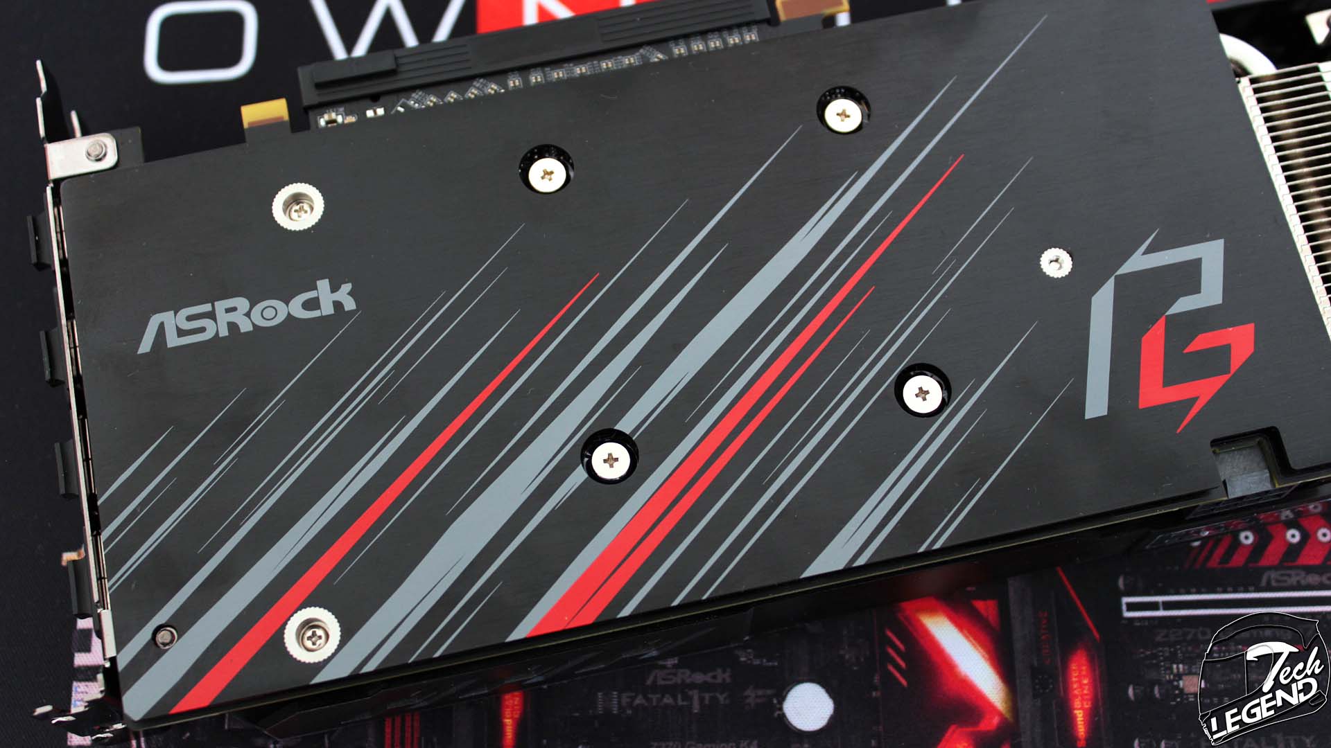 The back side of the graphics card is covered by a metallic backplate, the contact between the PCB and the backplate is made one the back of the GPU core through a pad, smaller pads are glued around the edges to keep the backplate straight.