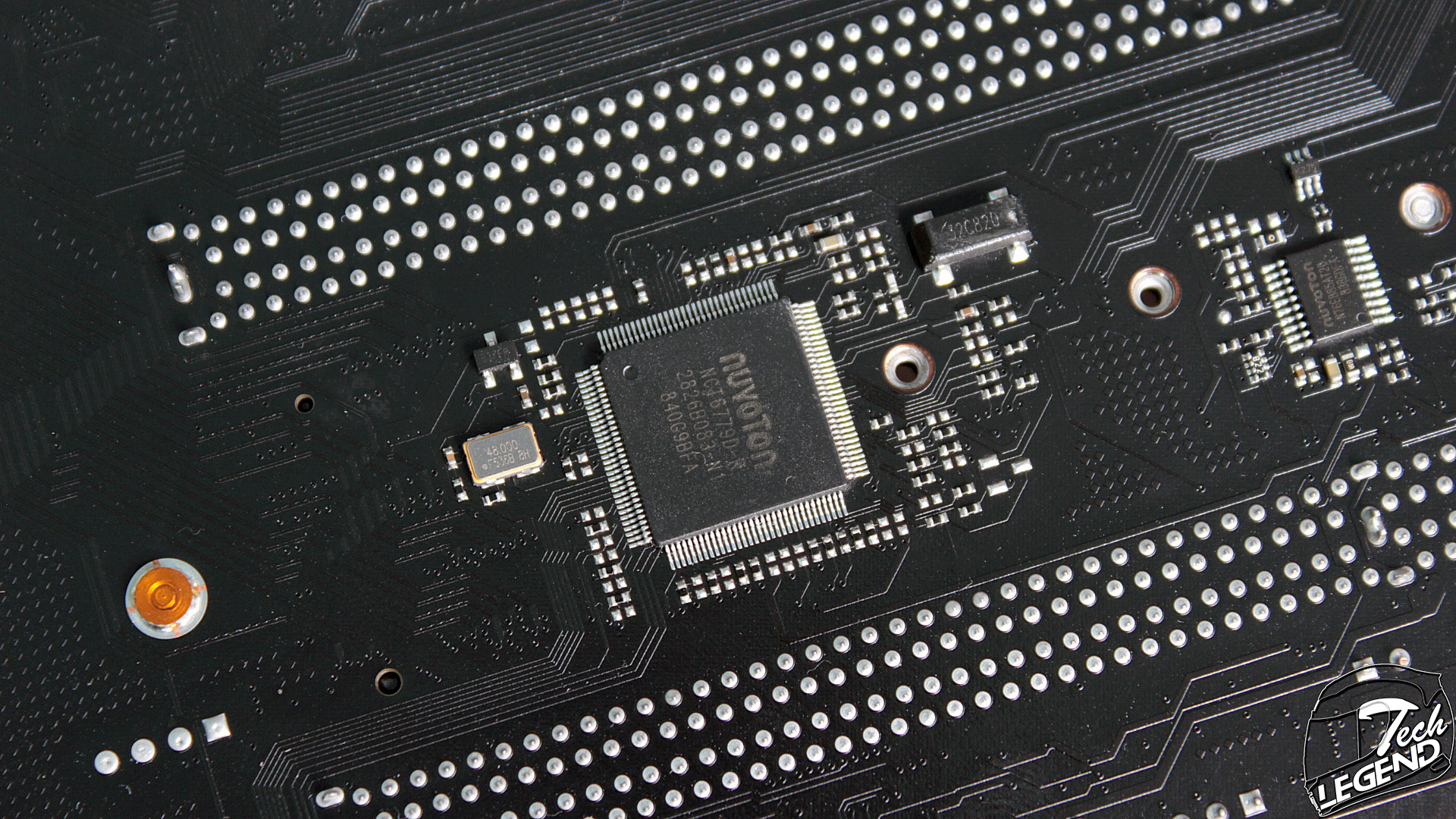 On the back of the motherboard there is the NuvuTon NCT6779D SuperI/O chip, this is responsible for the system management and sensor reporting. A recurring trend on the newer ASRock motherboards is to have this chip installed on the back of the PCB.