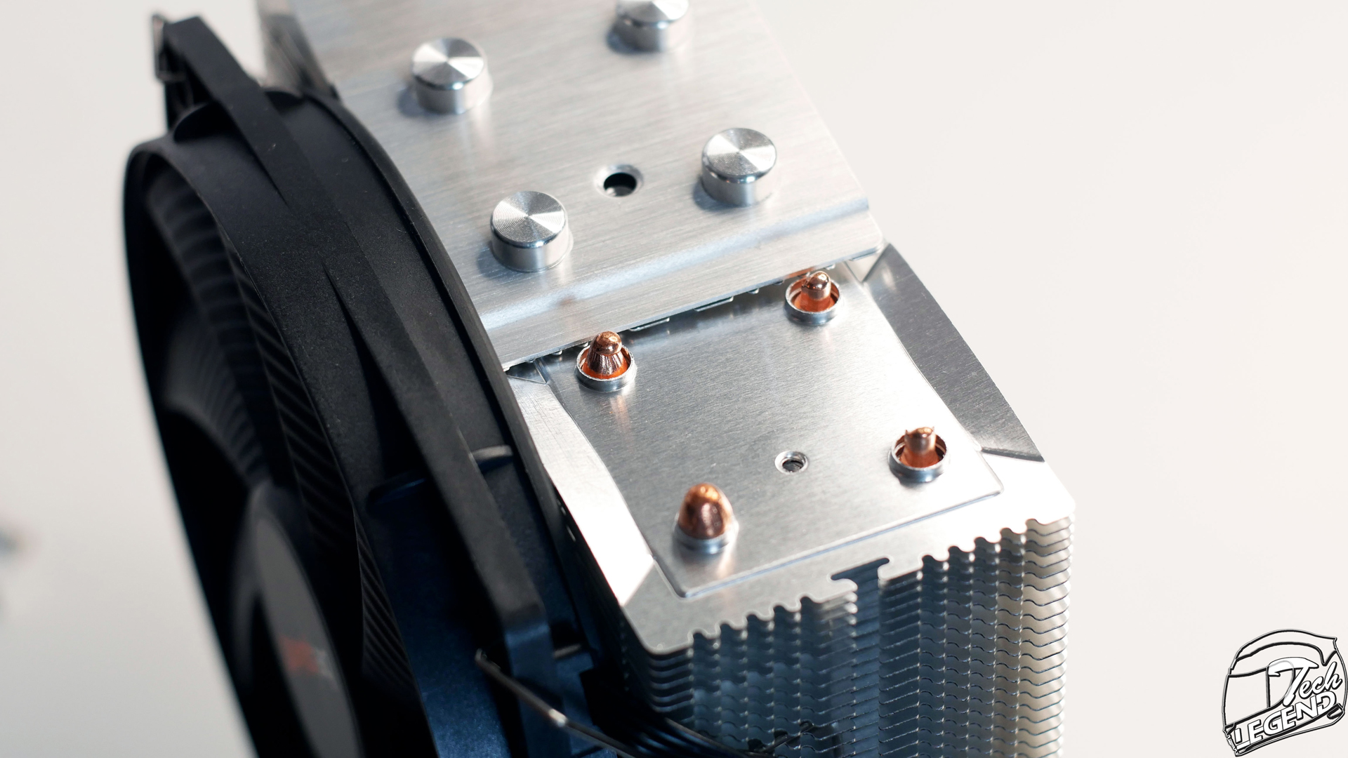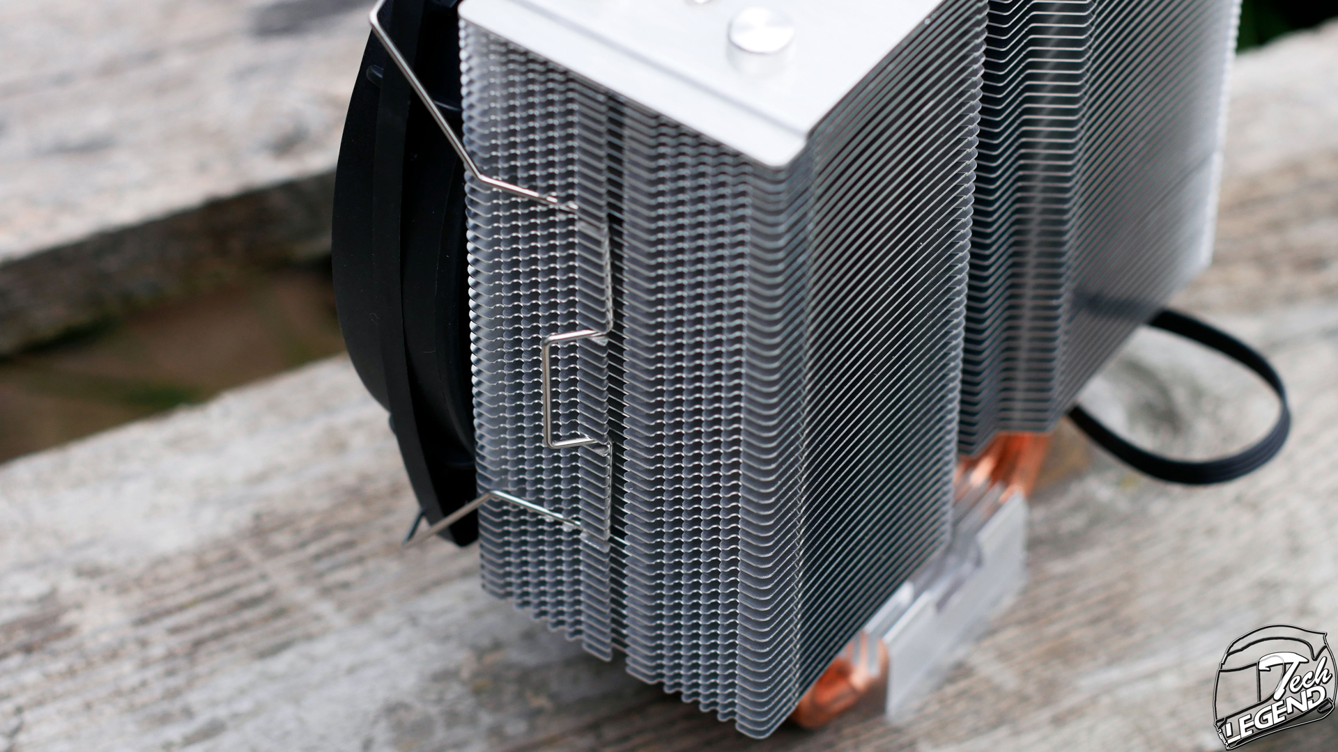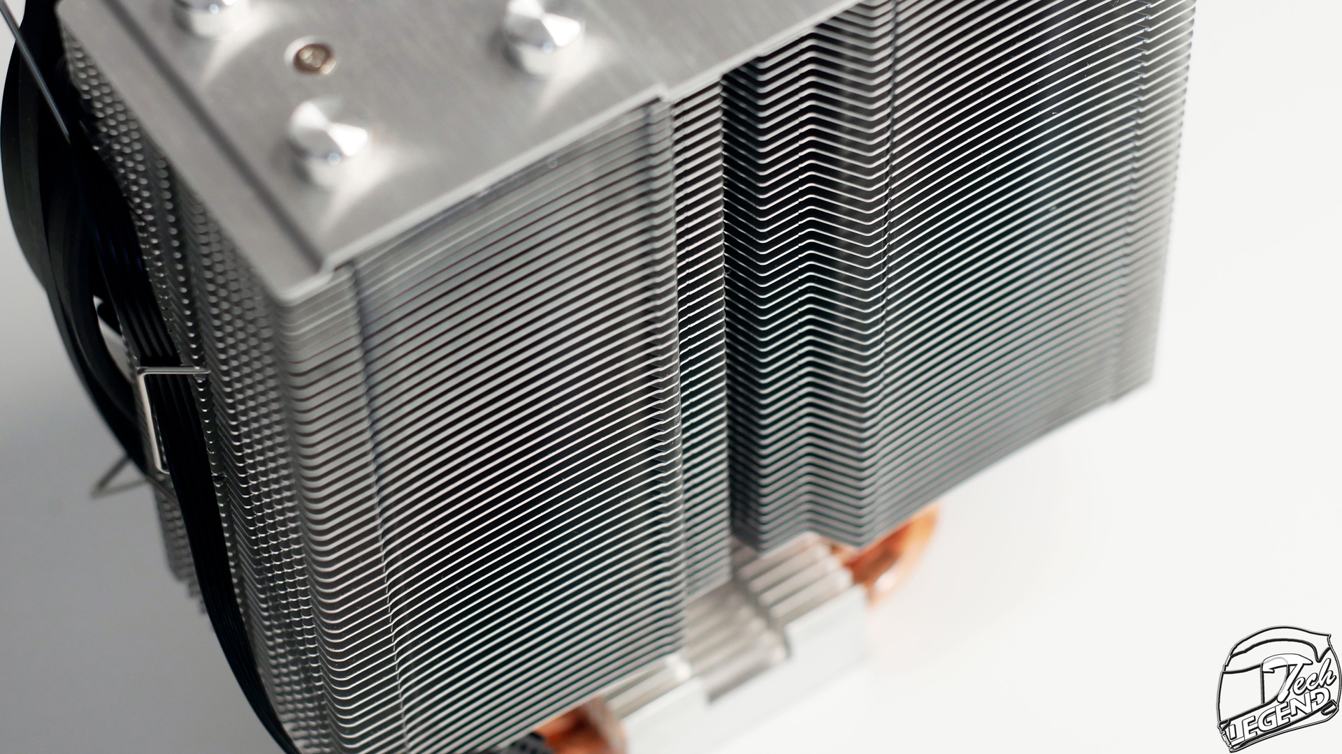 The heatsink used with this CPU cooler has no less than 53 aluminum made cooling fins and only four copper made heatpipes. These are what moves the heat away from the CPU and into the dissipation area of the CPU cooler.