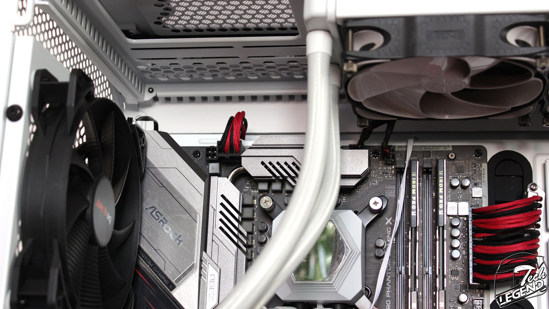 The interior of the Silent Base 802 is great to use for both air cooling and water-cooling systems. There is ample space around the motherboard area for large air CPU coolers, and the top drawer is a joy to use with radiators.