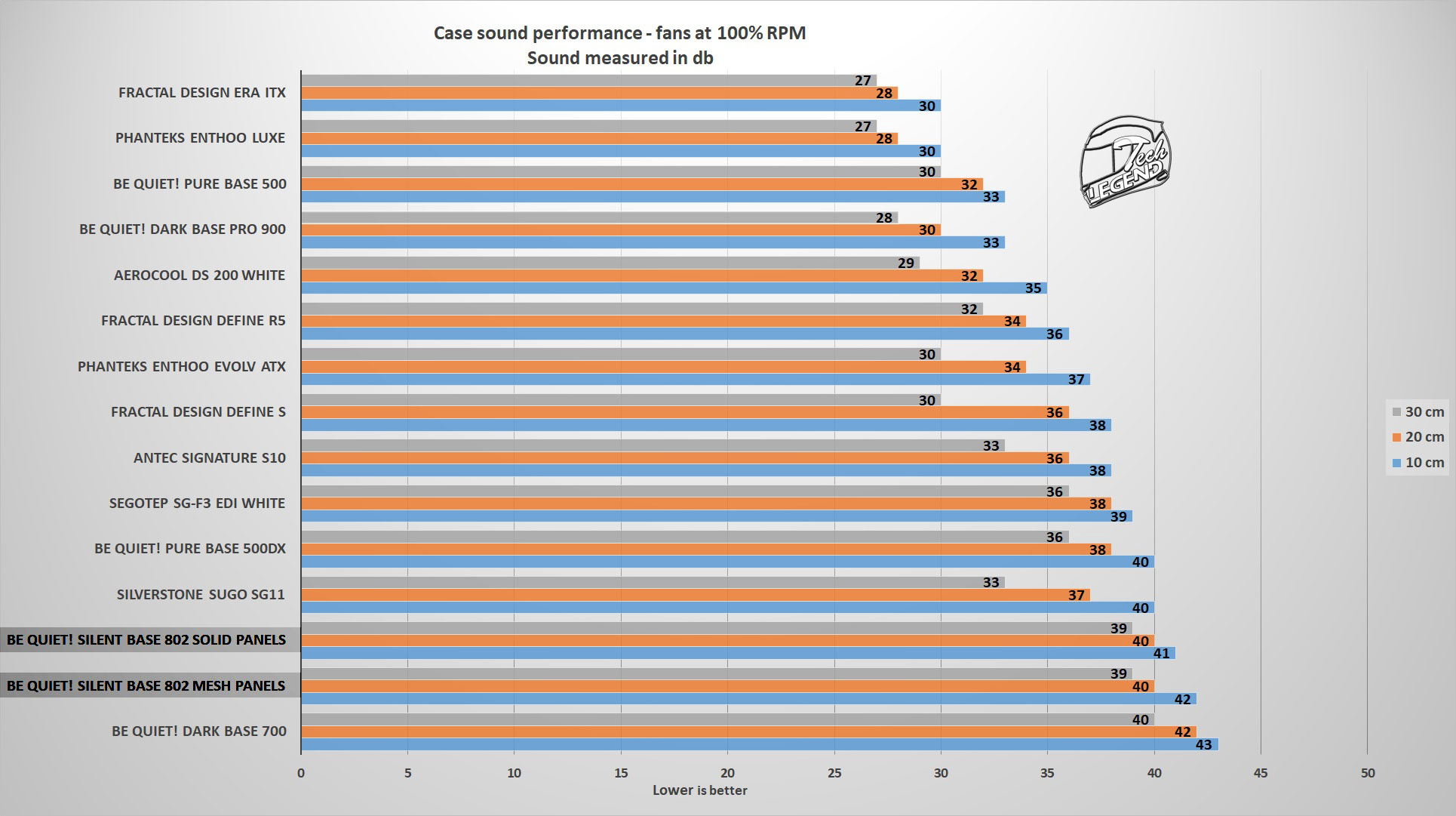 When it comes to case noise testing, all cases are tested in their factory configuration and if a fan hub or fan controller is pre-installed, it is used on its maximum setting. This means that all cases are being tested for noise output with their fans running at their maximum speeds.