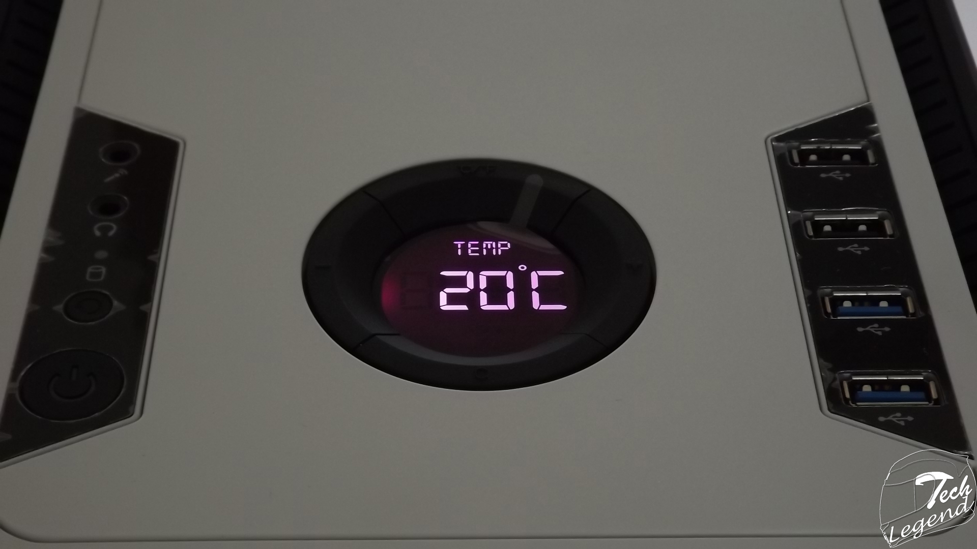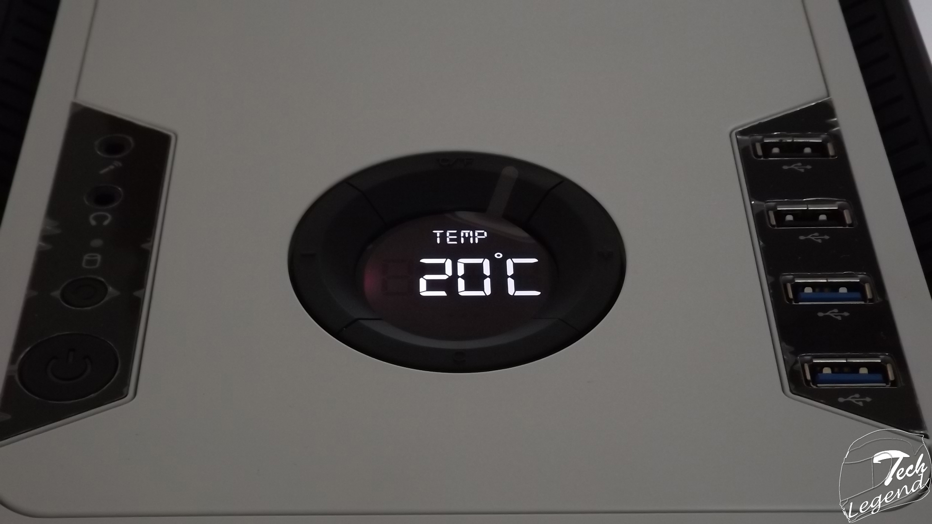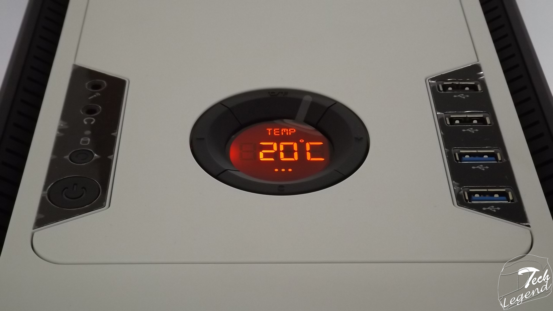 The I/O panel and the LCD Display/Fan controller are placed on the top of the chassis, the I/O panel is composed of the following: 2x USB 3.0, 2x USB 2.0, 2x Audio Jacks, 1 x Temperature LCD display and Fan Controller.