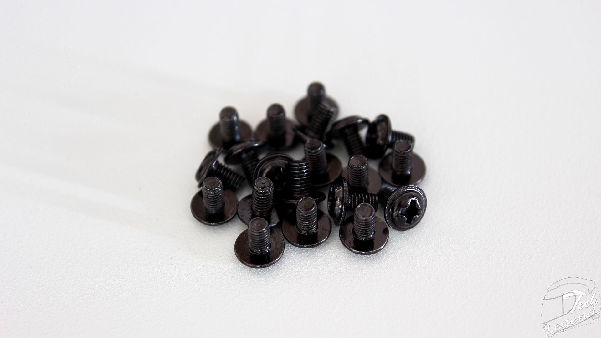 Installing the storage devices into the HDD metallic brackets is done with ease, using metallic screws and rubber washers to mount and reduce the amount of vibration.