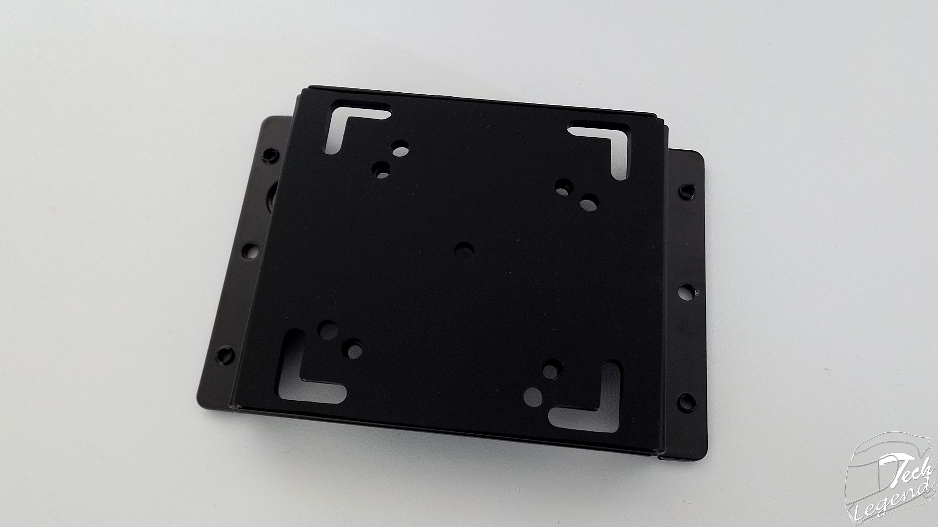 The case includes one removable dust filter (From the back) the case is resting on two wide aluminum feet with rubber base.