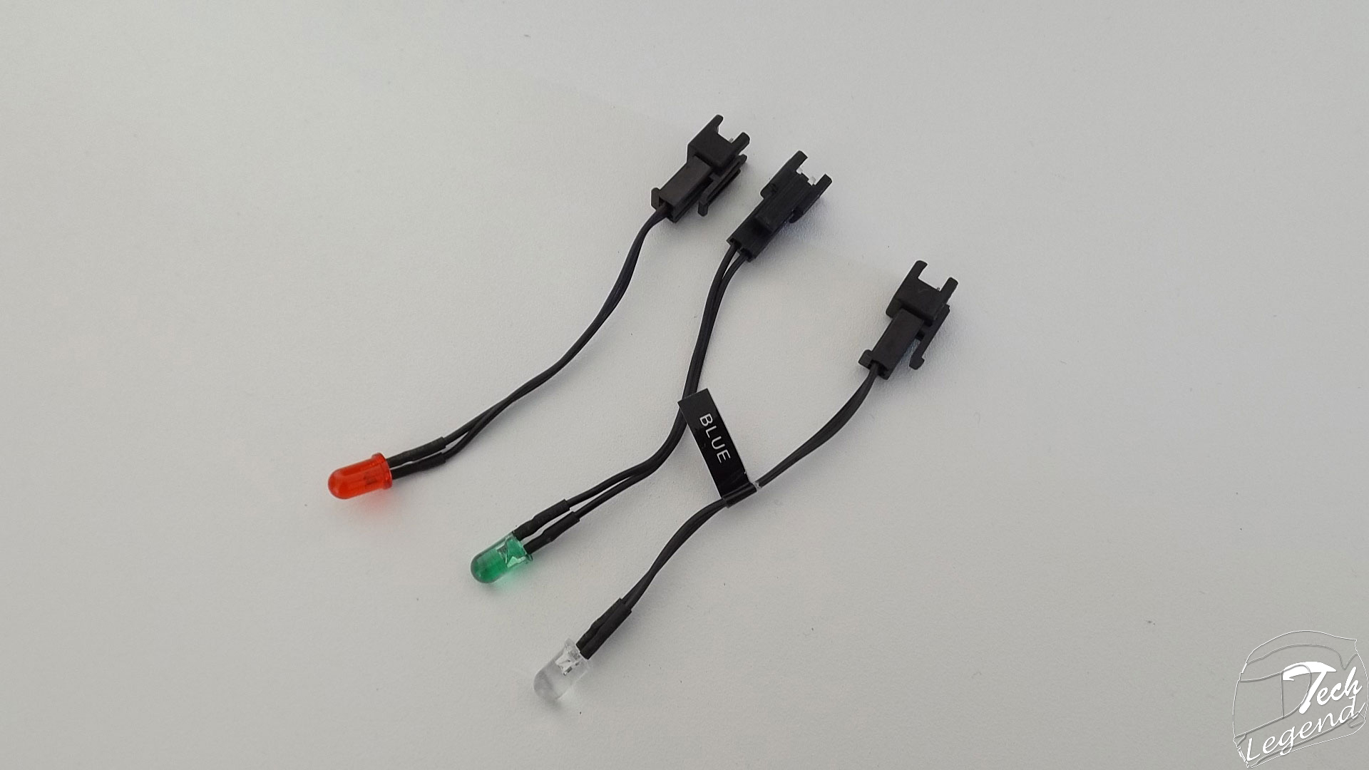 On the lower side we have the white Power LED. Included in the accessory bundle we find three other LEDs (Red, Blue, Green) which can replace the standard white Power LED.