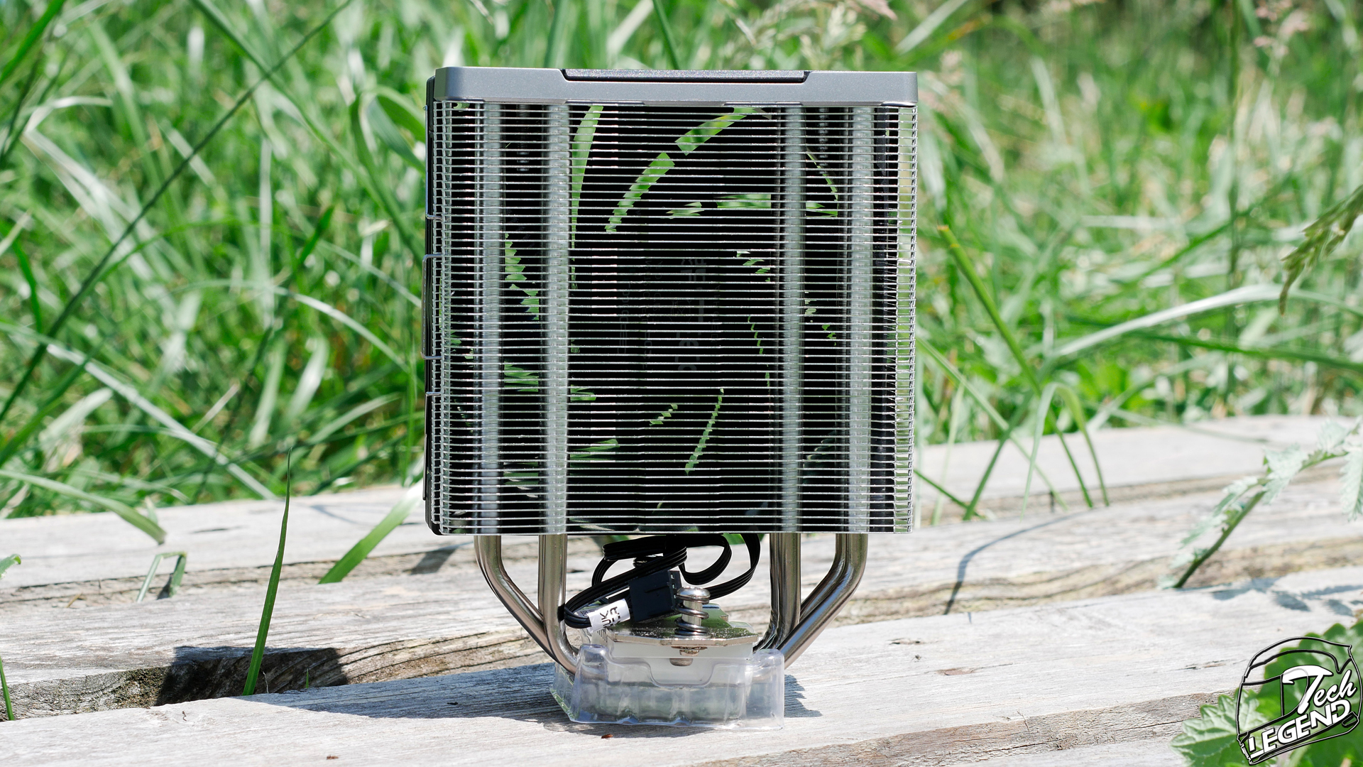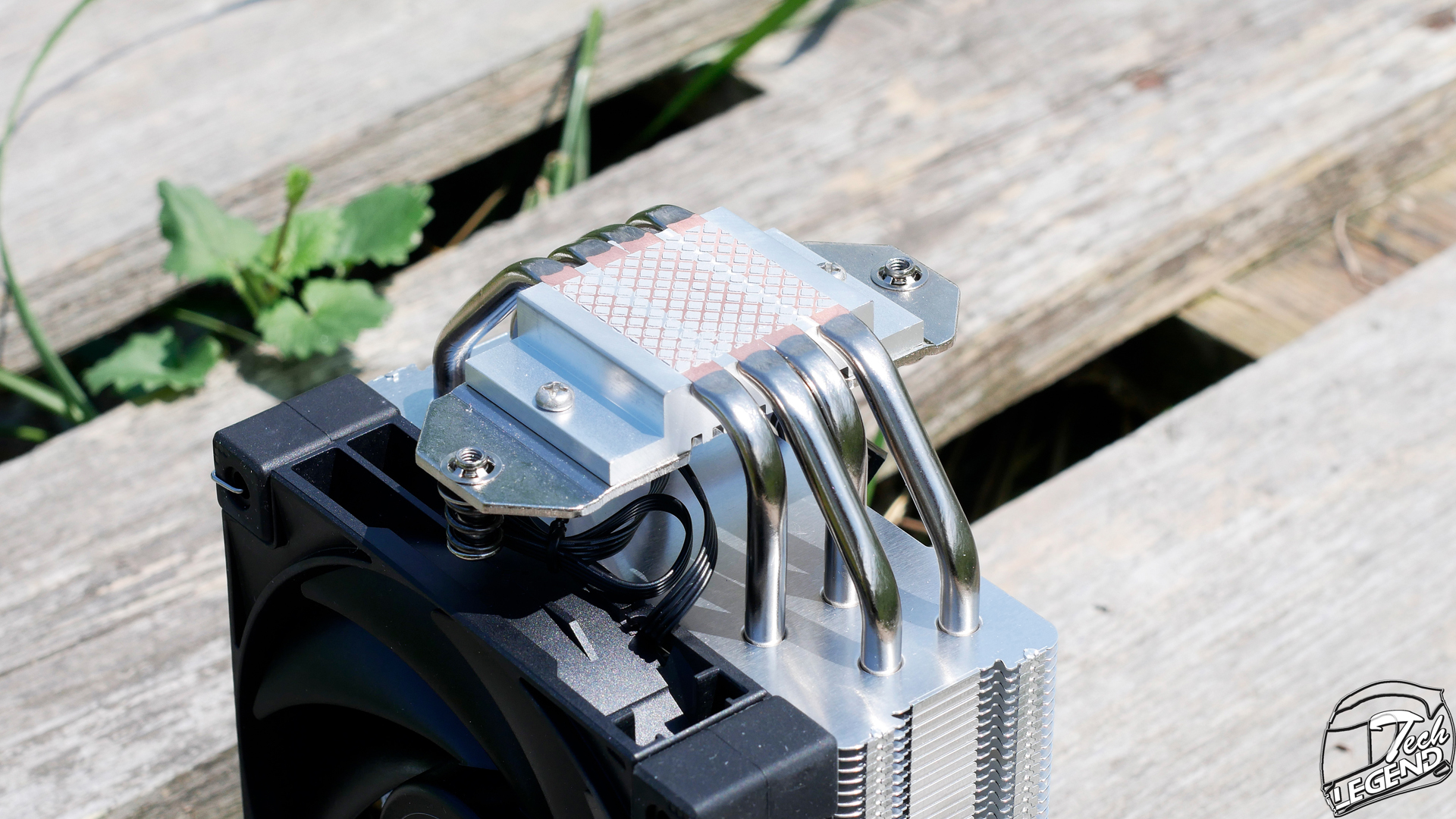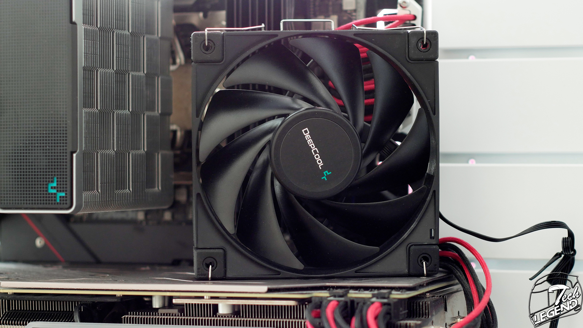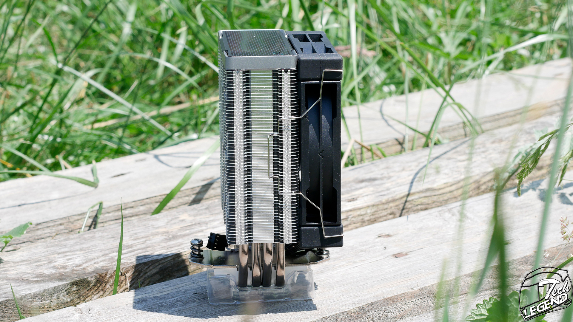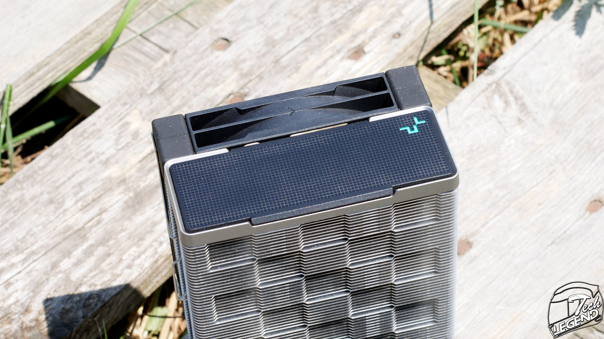 The top part of the cooler is covered by the same plastic plate found on the DeepCool AK620. It has a good design that is not over the top and blends well with the rest of the system. In addition, this place will cover the heatpipe endings which is great, as often, the heatpipes are not symmetrical.