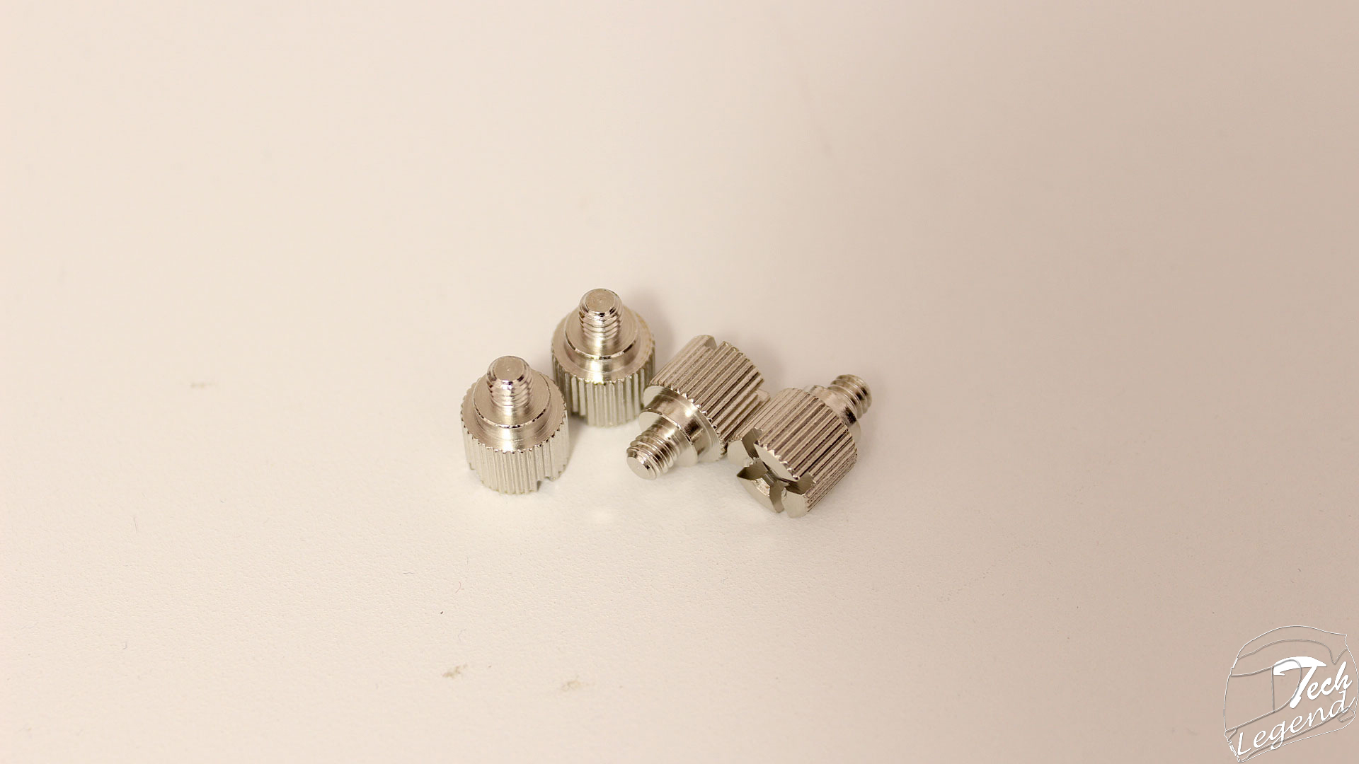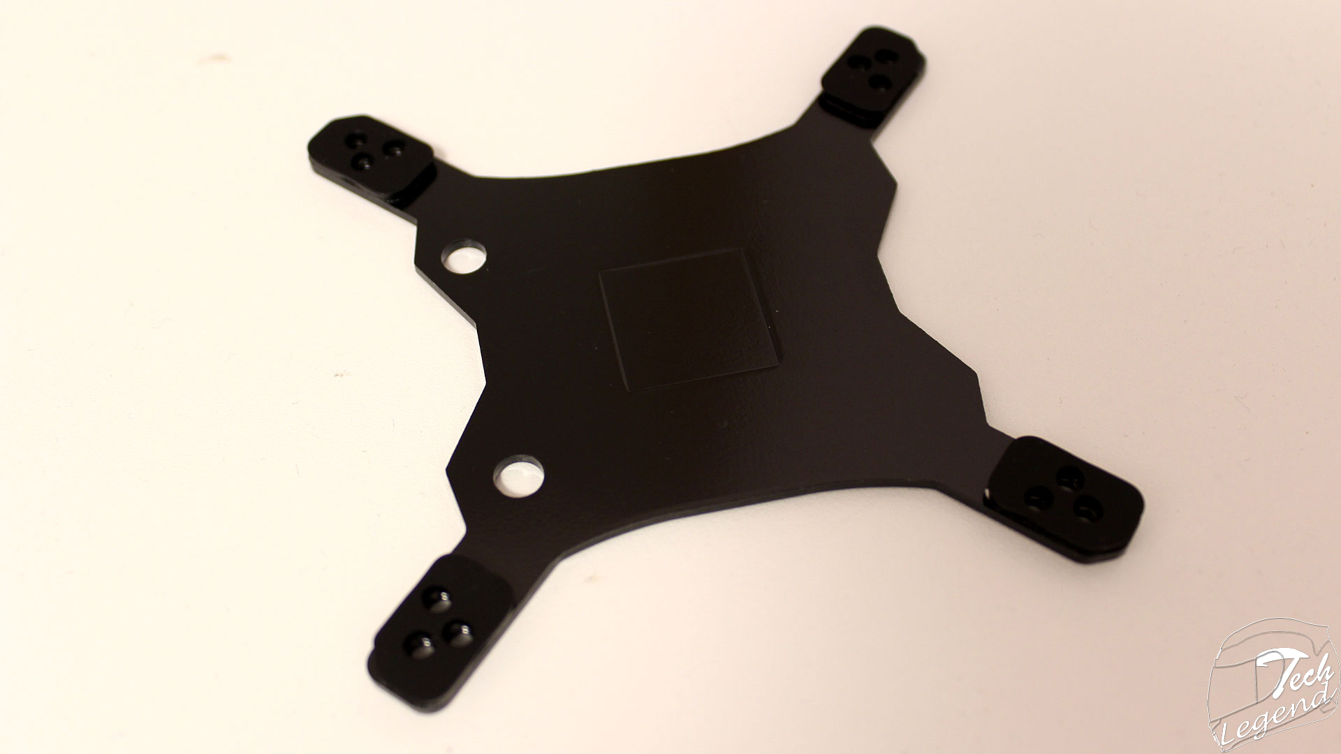 The base of the cooler is made out of nickel-plated copper. The base is brushed to a mirror-like finish. The back side of it is engraved to facilitate the mounting system of the cooler.