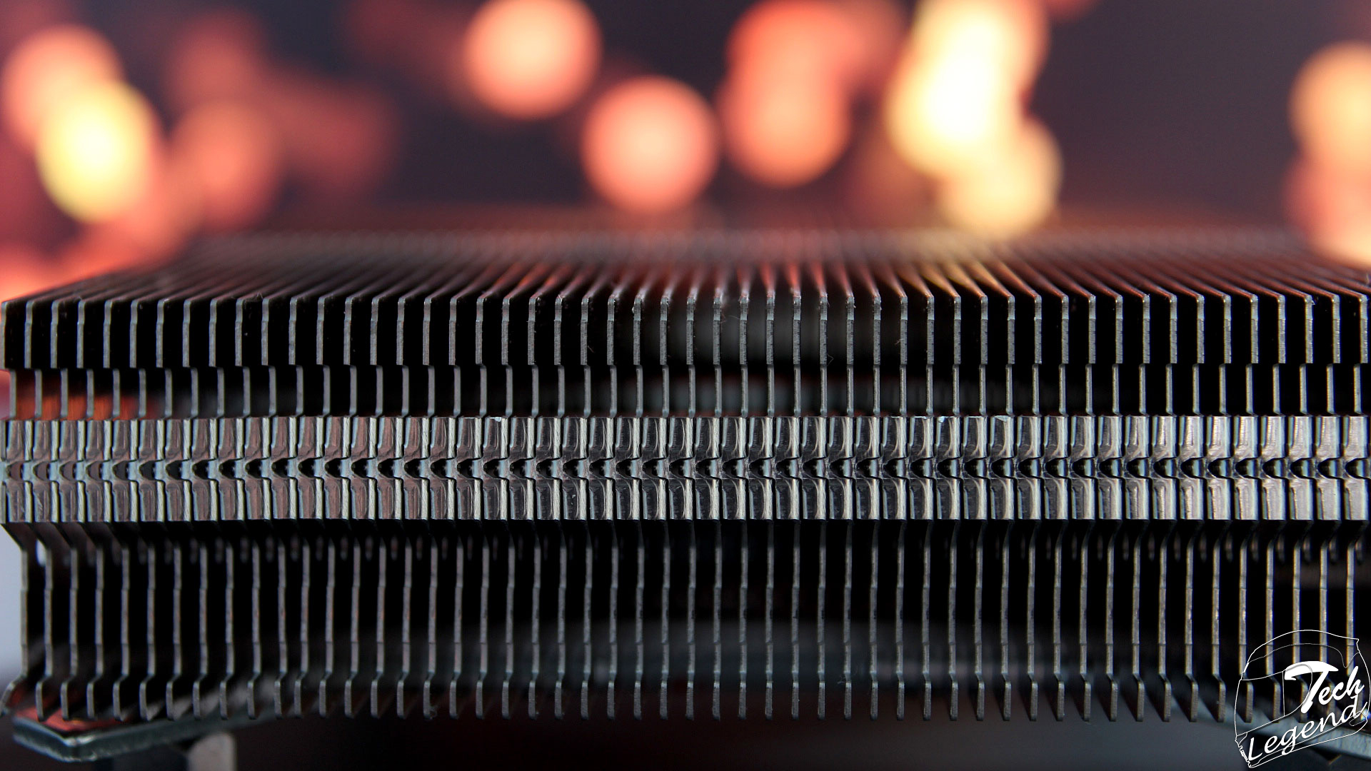 The heatsink uses 57 aluminum fins, these are perforated on the edges to facilitate the mounting of the 92mm fan.