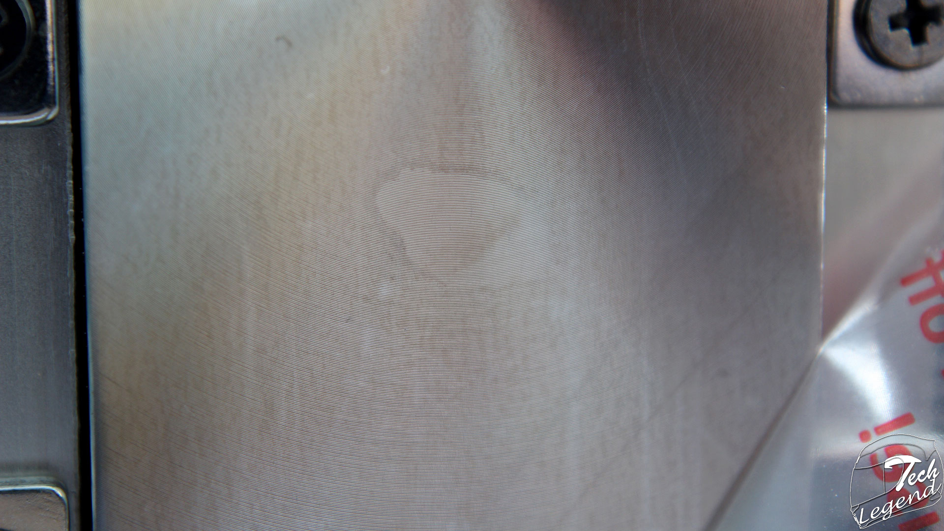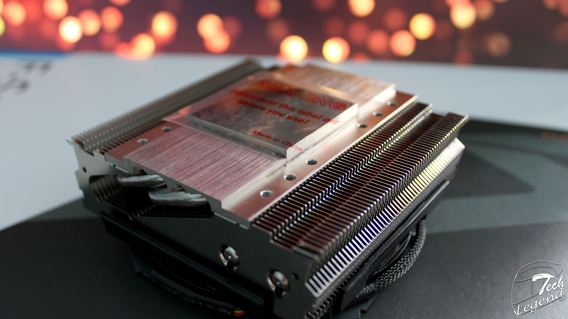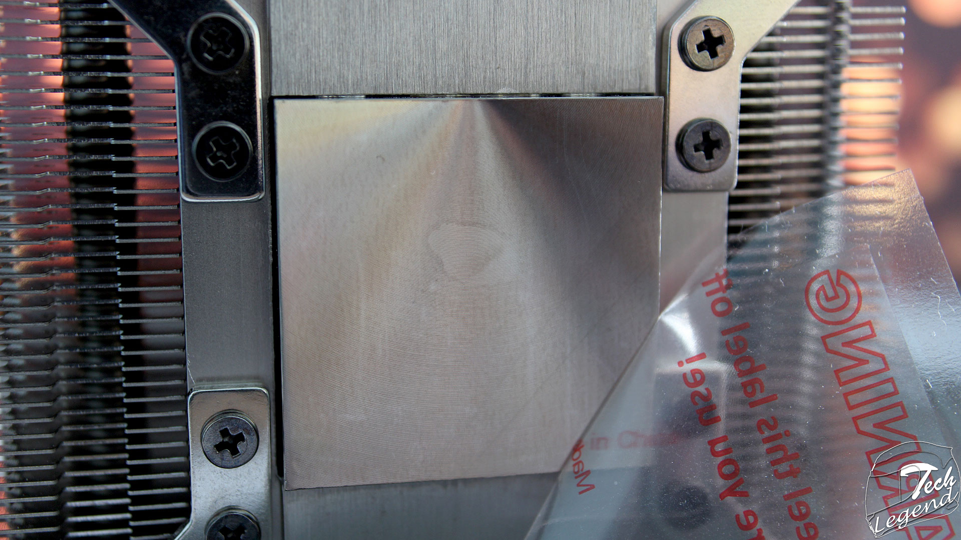 The base of the cooler is made out of nickel-plated copper just like the heatpipes. Also the base is brushed.