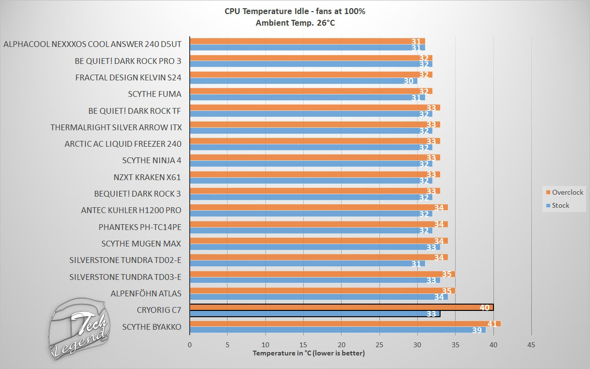 The idle test consists of the CPU sitting idle at the desktop for 30 minutes, the temperature was measured at the end of the test.