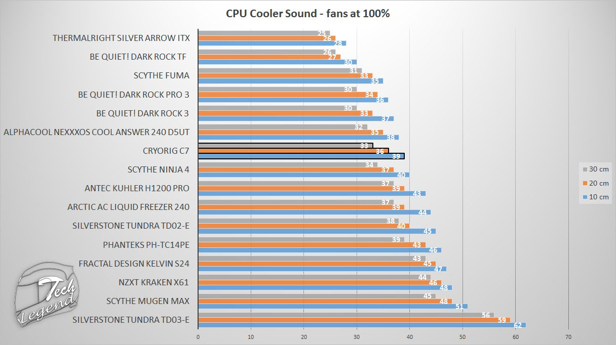 The cooler was tested with the CPU at the default turbo frequency of 3.9 GHz and overclocked to 4.5 GHz with a core voltage of 1.187 V.