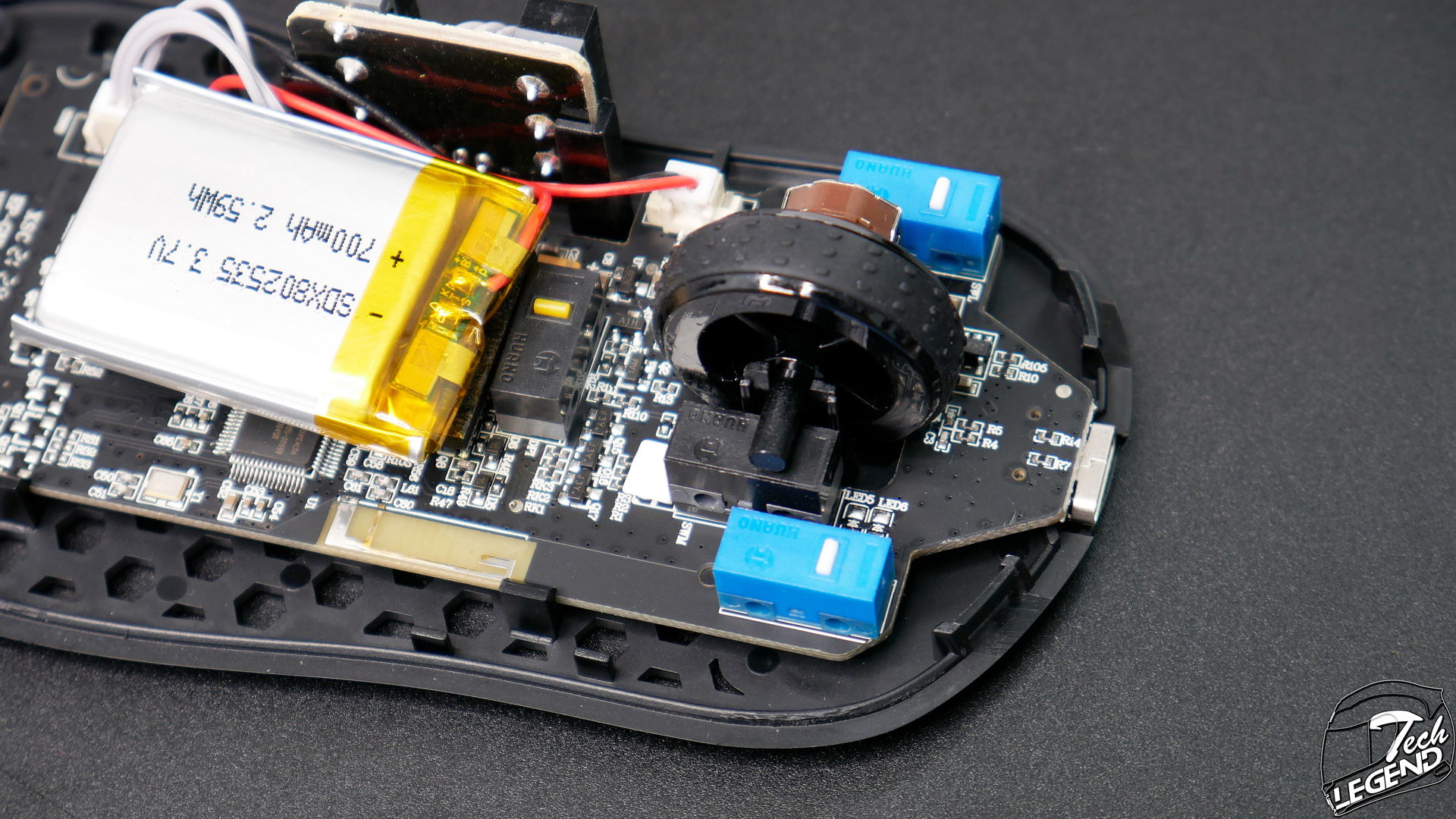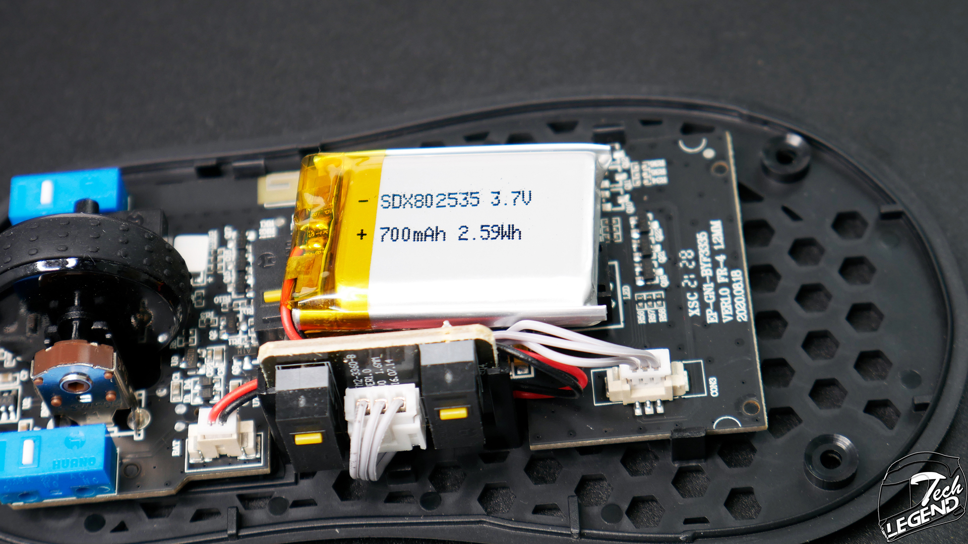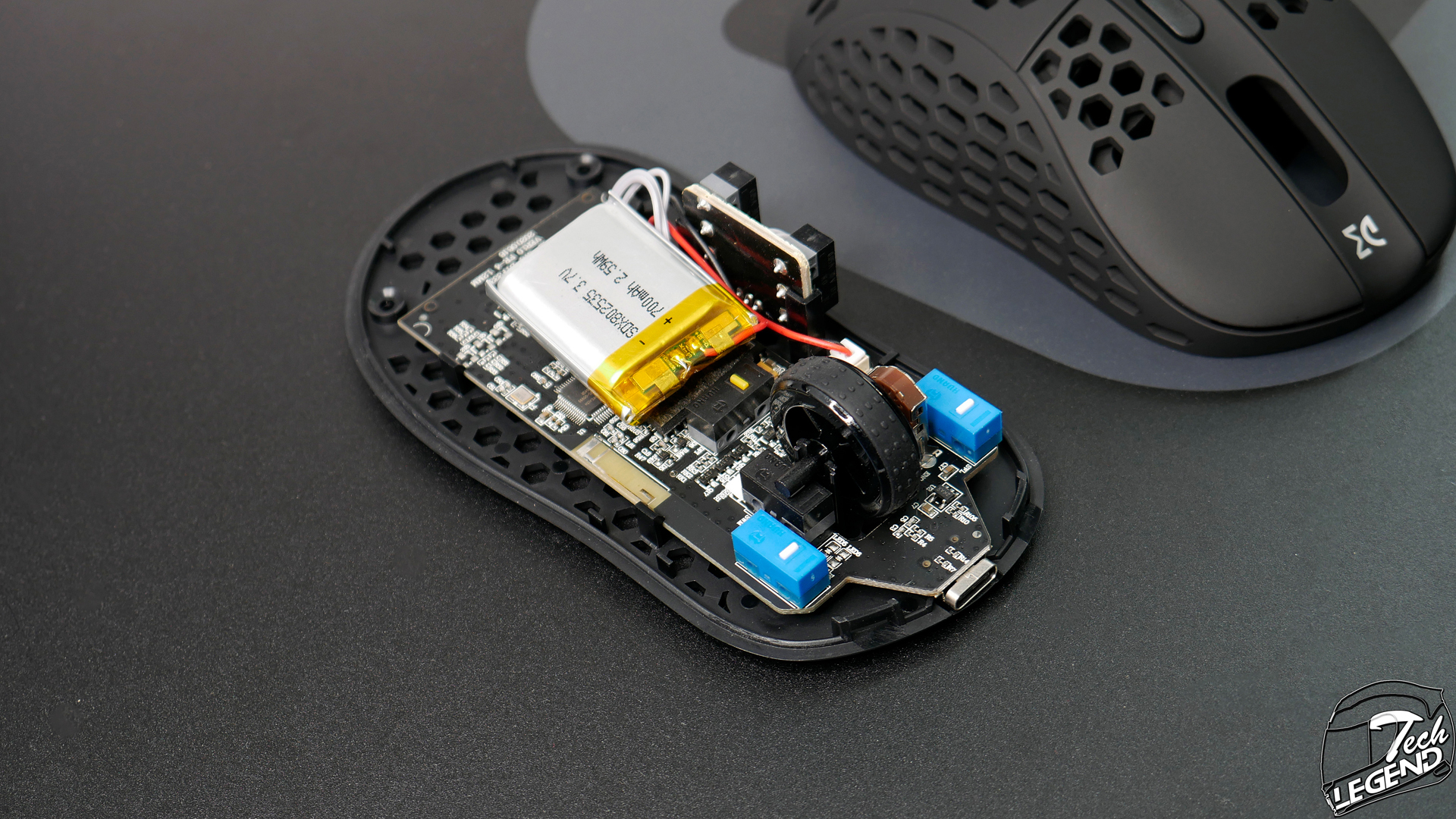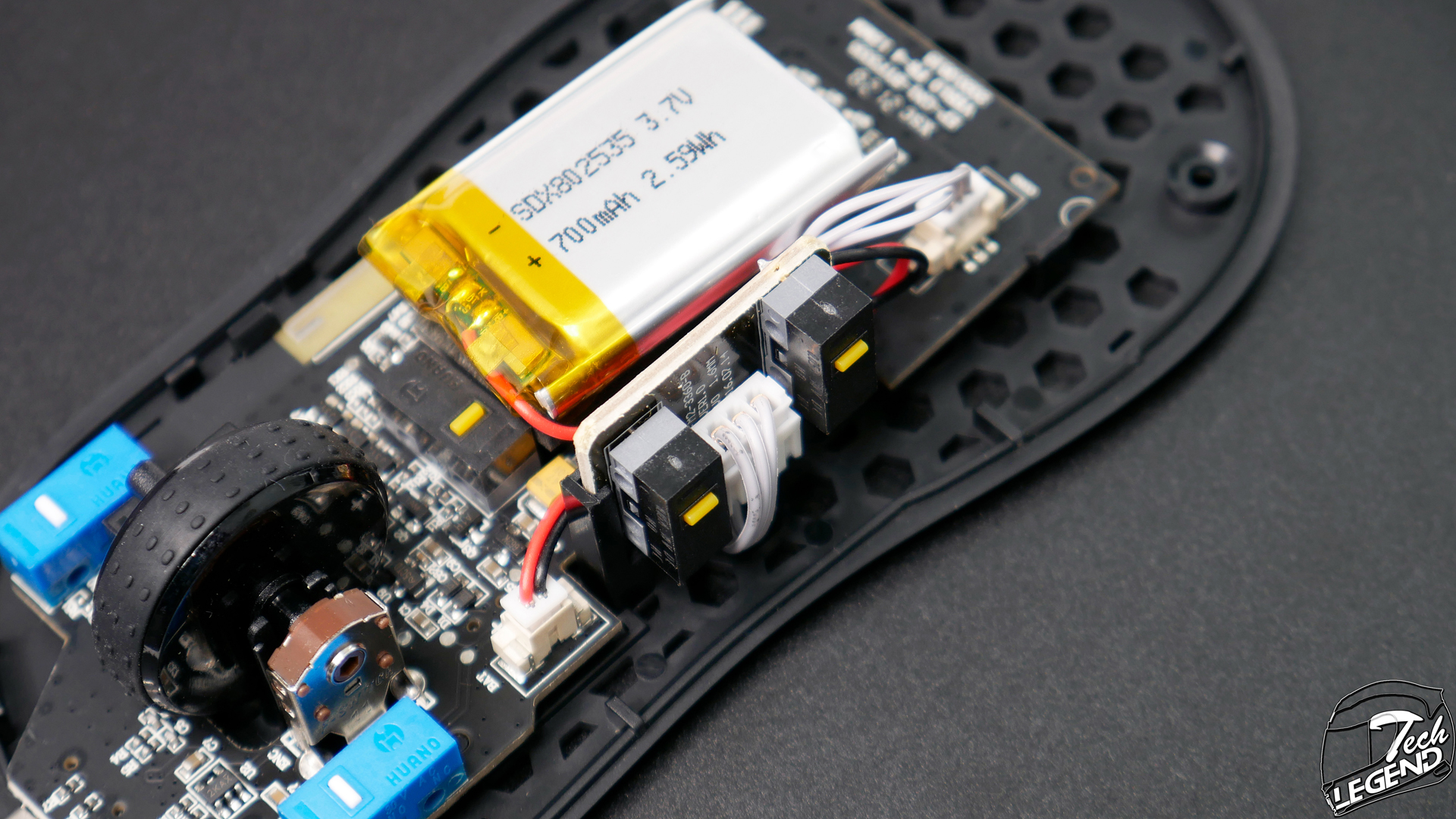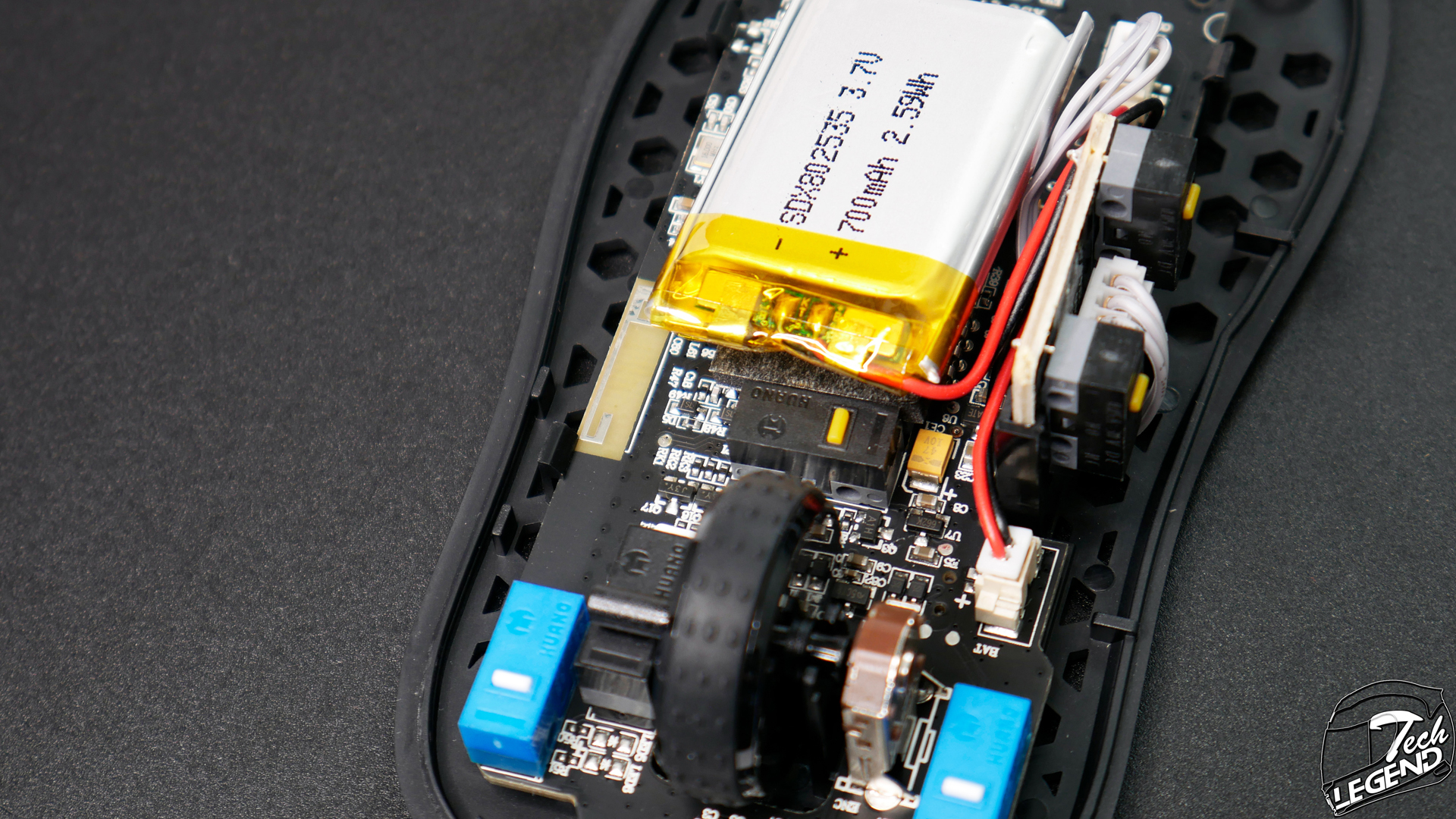 The DM6 Holey Duo Wireless uses a 700 mAh internal battery. Unfortunately, it is installed above the optical sensor and has no bracket to hold it in place inside the mouse. While keeping the weight low is important, having the battery secured in its place shouldn’t be ignored.