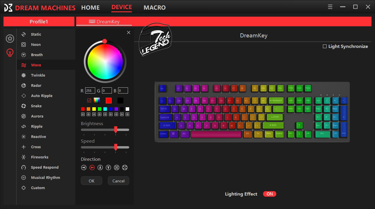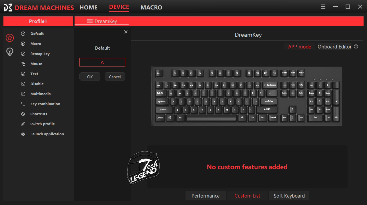 The software used by the DreamKey is simple in design and light on your system. However, it is not as intuitive as it could have been, as it uses sub menus to access all the functions of the keyboard. This software will control the macro functionality of the keyboard, the RGB system and the additional functions, such as macro shortcuts, Windows key disable and so on.