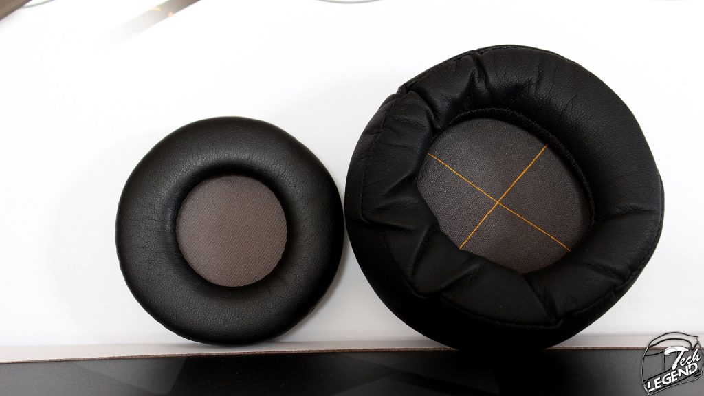 The headsets can be assembled in two configurations: “On the Road” and “Gaming”. The smaller on-ear type earpads are dedicated for use with the headsets outside while the bigger over-ear type earpads are meant for use inside. The earpads are covered in PU leather, the only graphical element on them is an orange X on the inside.