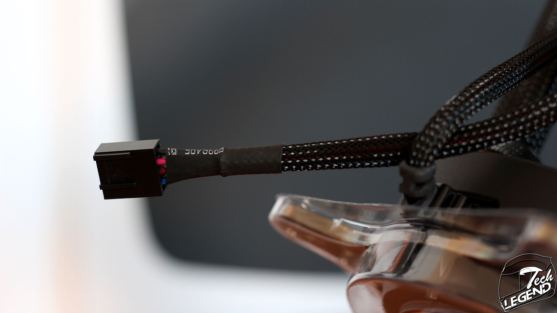 The integrated fan hub of the cooler is mounted in between the two ports of the radiator, it has three 4-Pin Molex headers, one being already taken by the connector that powers the whole hub.