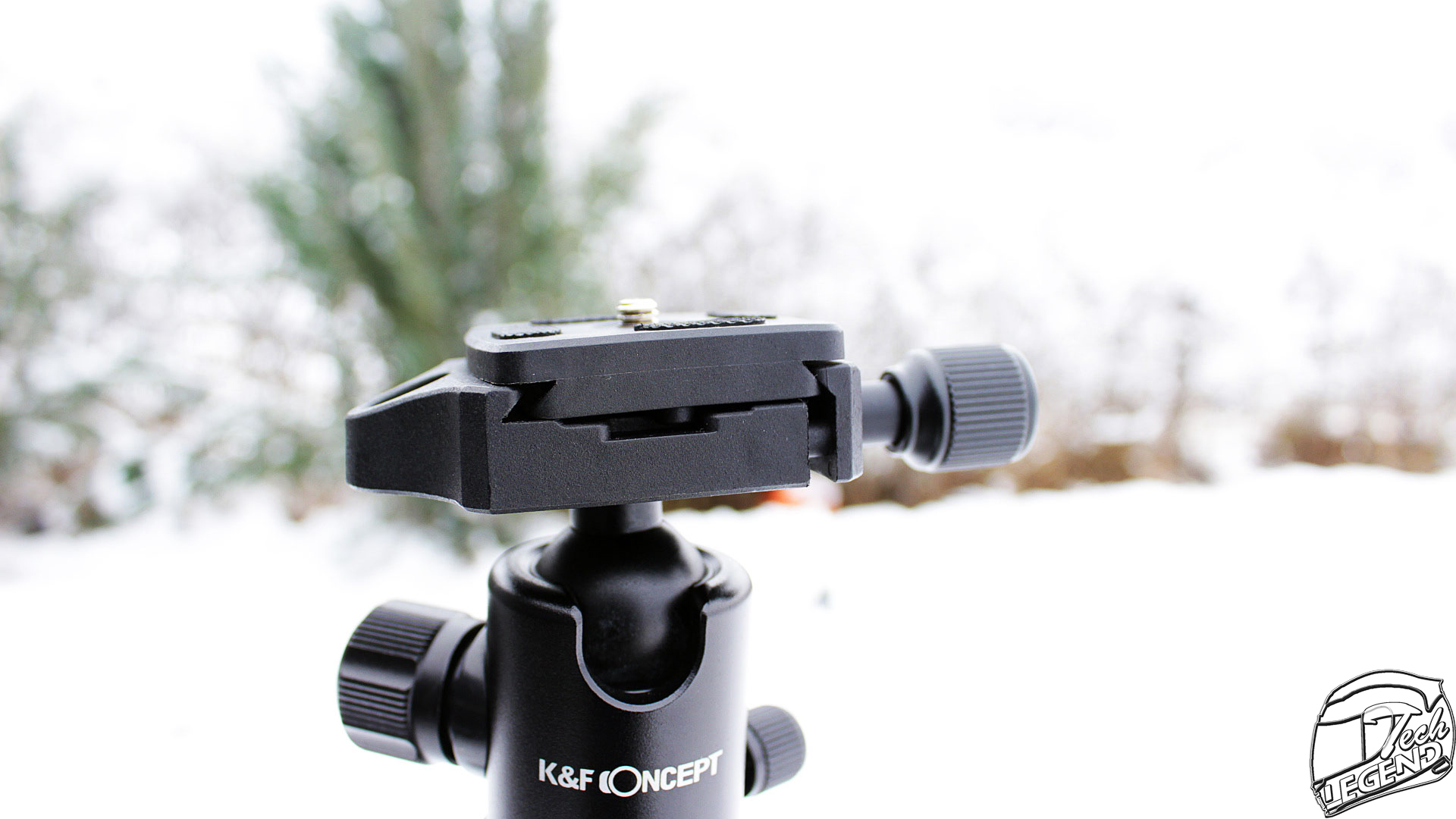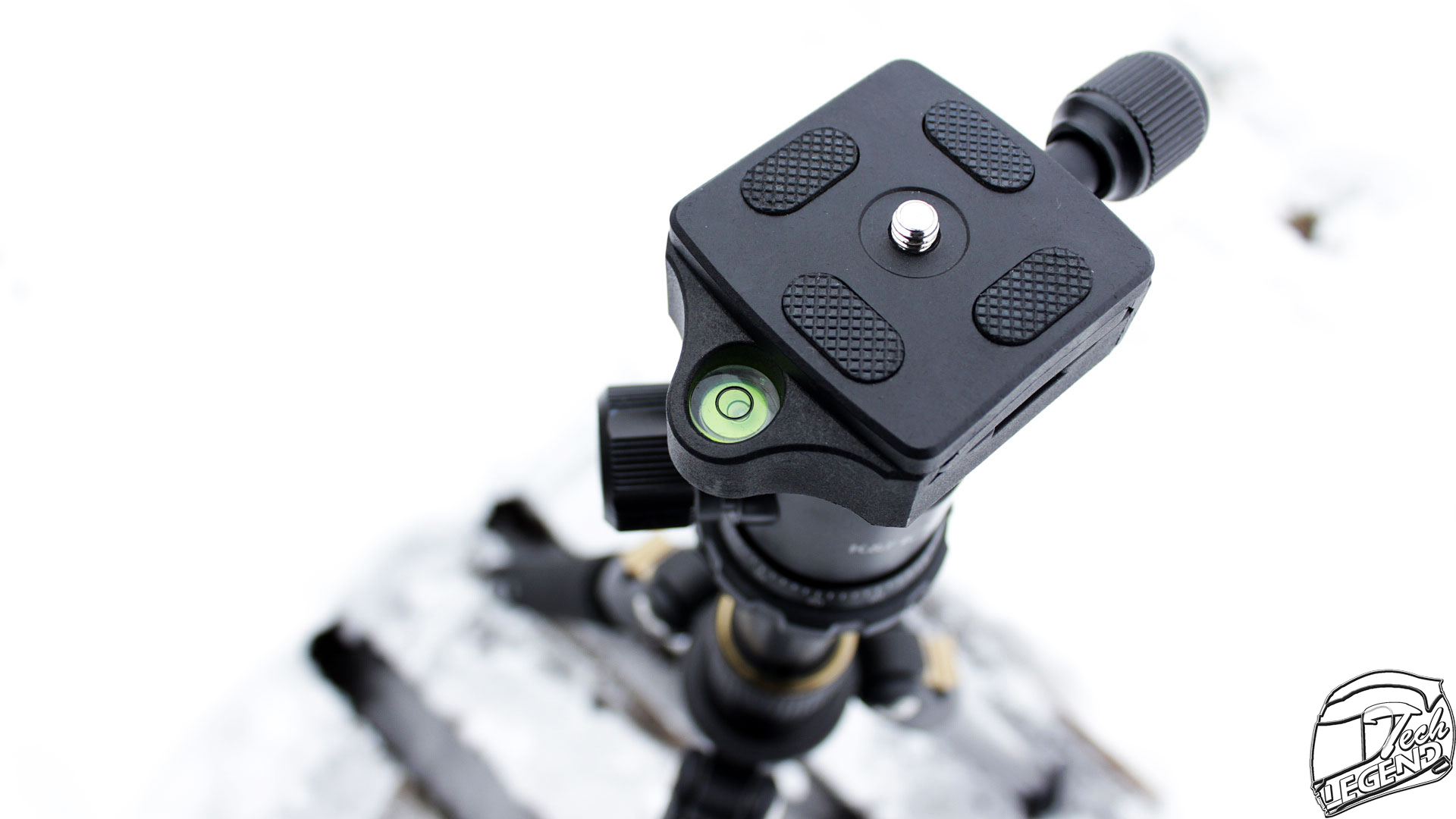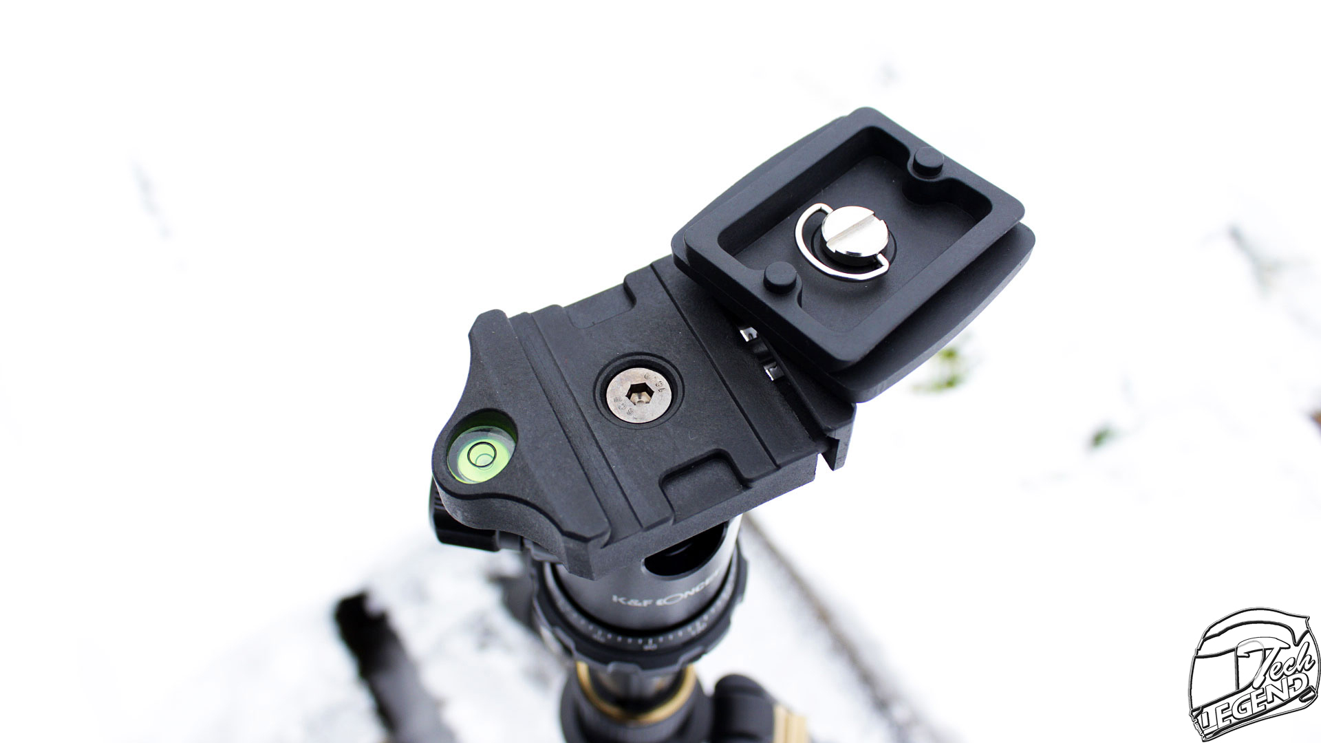 The tripod head preinstalled on the KF-TM2324 is a standard ball head. This type of tripod head allows for free adjustment on all axis. In addition, the bottom part of the head has white numerical markings to facilitate 360° panoramic photography. This ball head also has included a simple liquid bubble level.
