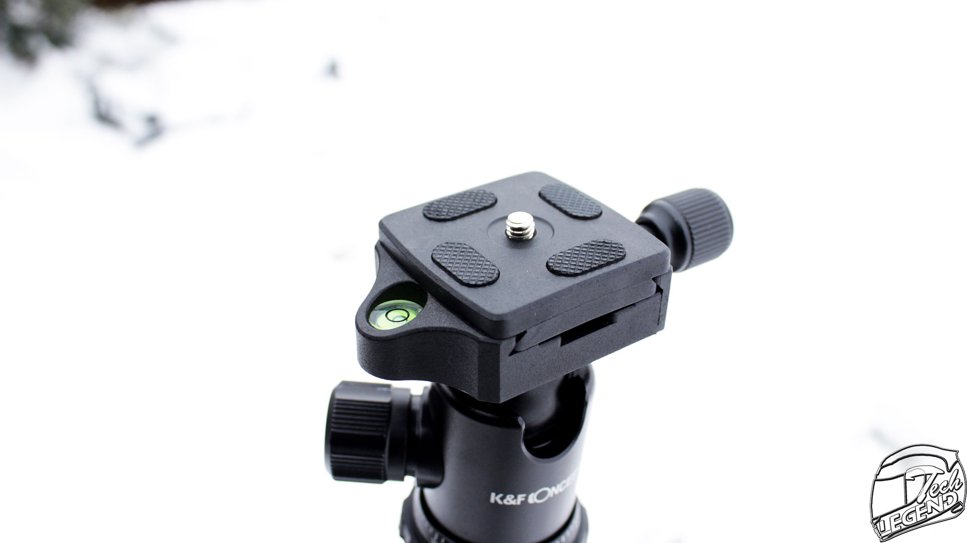 The top plate found on the tripod head is made entirely out of plastic, and features rubber pads on the upper side. Fortunately, the mounting screw of the top plate has a hook which allows you to use it with no tools.