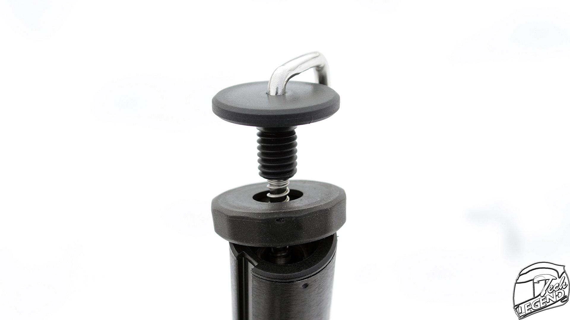 At the bottom of the main beam, there is a spring-loaded hook which can be used to hold additional equipment or to add more weight to further stabilize the tripod