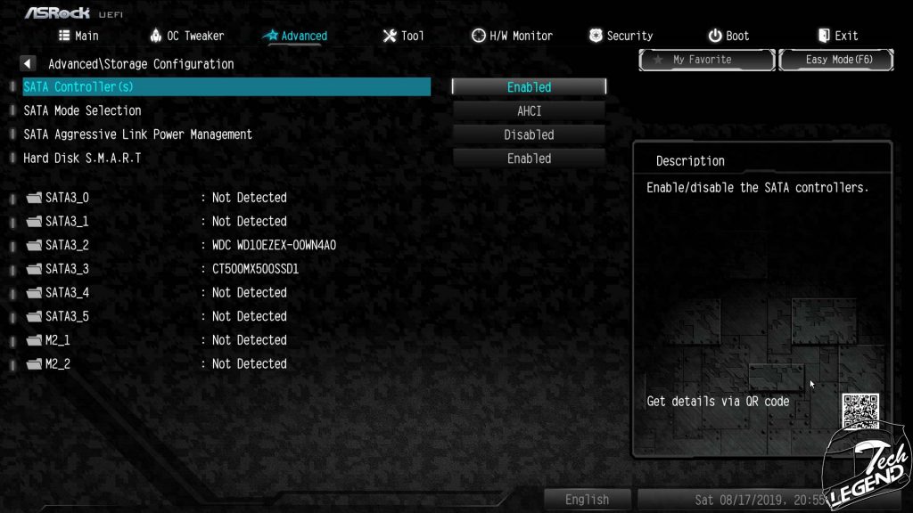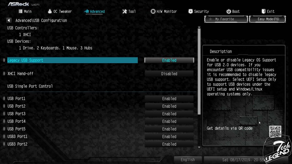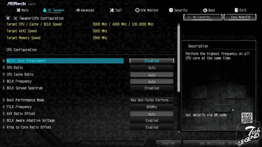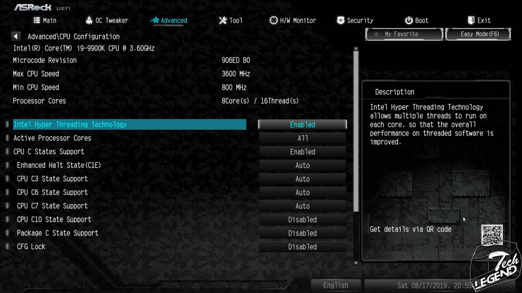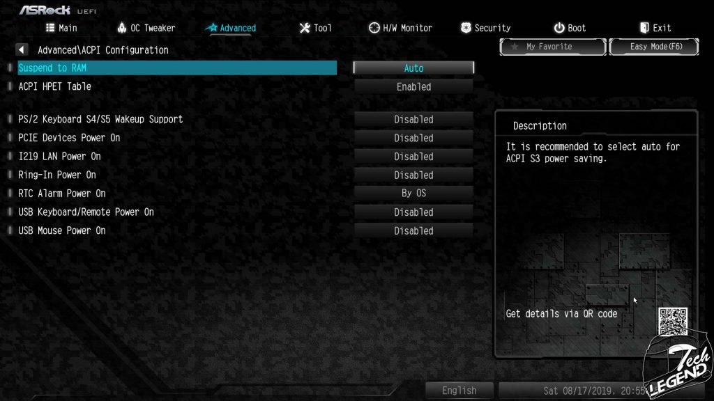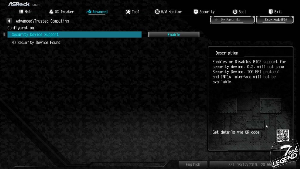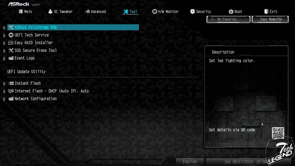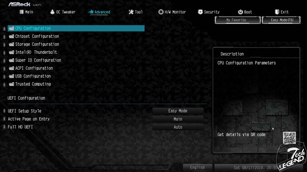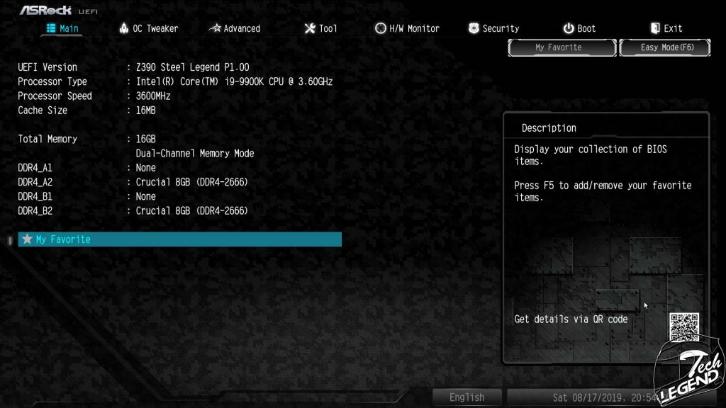 The bios interface used on the Z390 Steel Legend is using a different design than other Steel Legend motherboards. First of all, the digital pattern is used over a soft dark background for all the pages of the Bios.