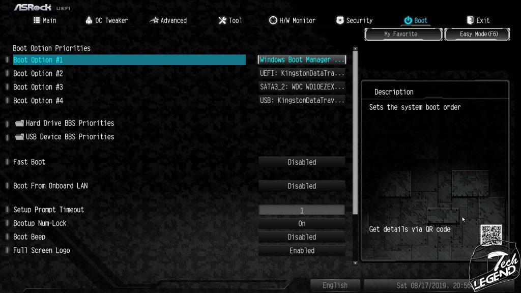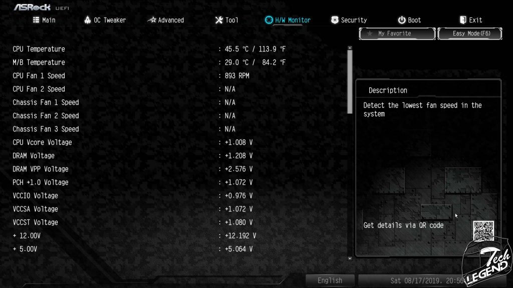 The first page of the Bios which is set by default to open every time the Bios is accessed, is called the EZ or Easy Mode window. Here, all the important information about all the system’s components are displayed. This includes the CPU and memory frequencies as well as the speed of all the fans connected to the motherboard and the storage devices.