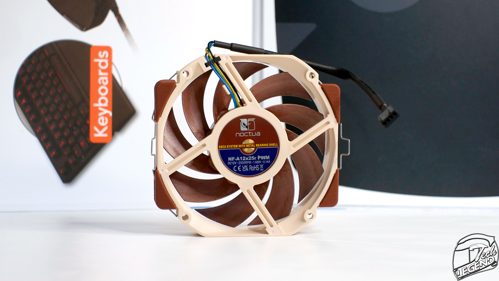 By default, this CPU cooler has only a single 120mm fan for its active cooling. The NF-A12x25r PWM has a maximum speed of 2000 RPM and a minimum speed of 450RPM. This fan uses the well-known Noctua SSO2 bearing system.