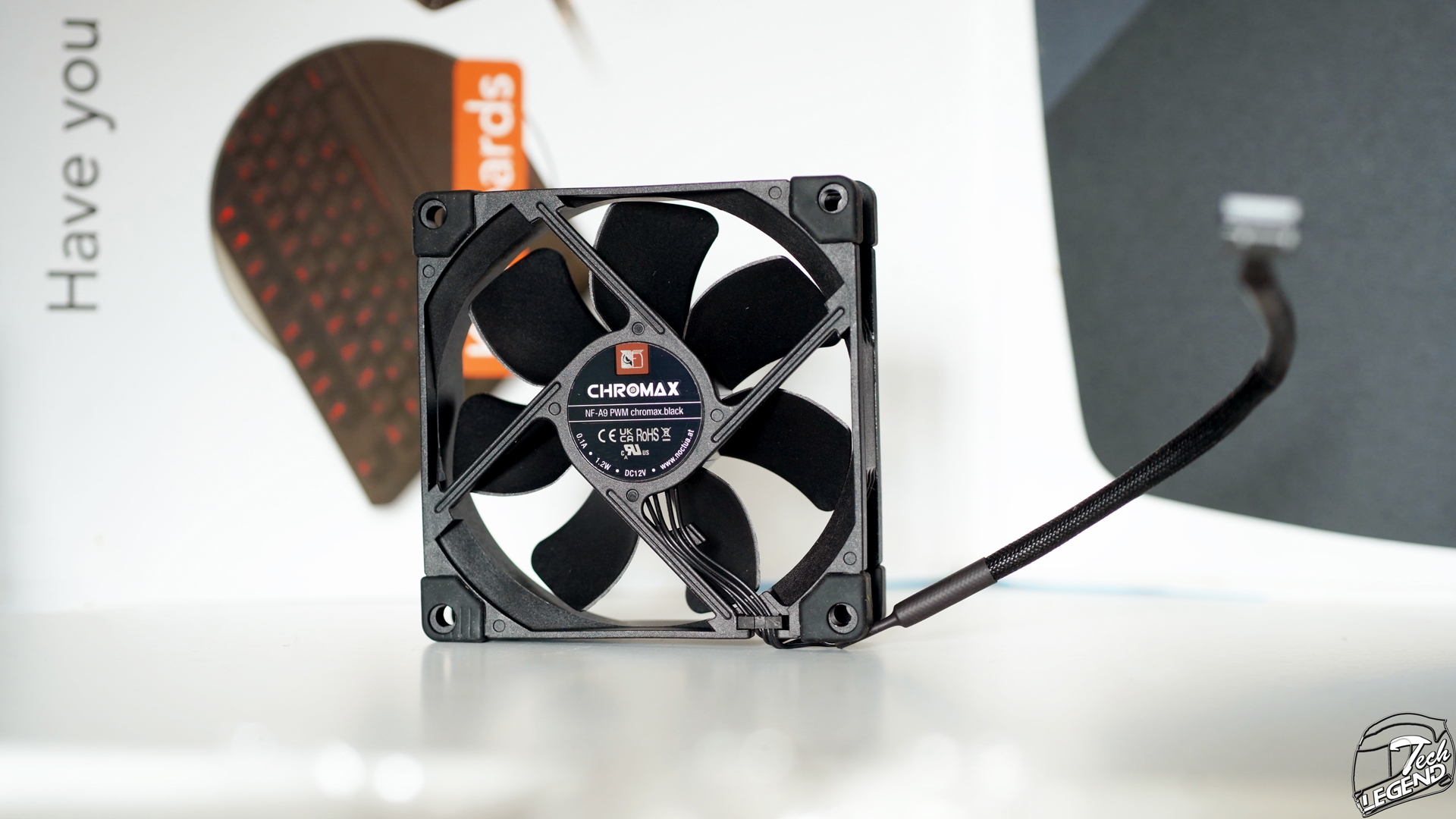 The CPU cooler can accommodate multiple 92mm fans, however, by default it comes with just one, the Noctua NF-A9 PWM chromax.black. This fan has a speed range of 400-2000RPM. Thanks to its PWM functionality and 4-pin connector, the speed can be controlled via the motherboard or a fan hub with no issues.