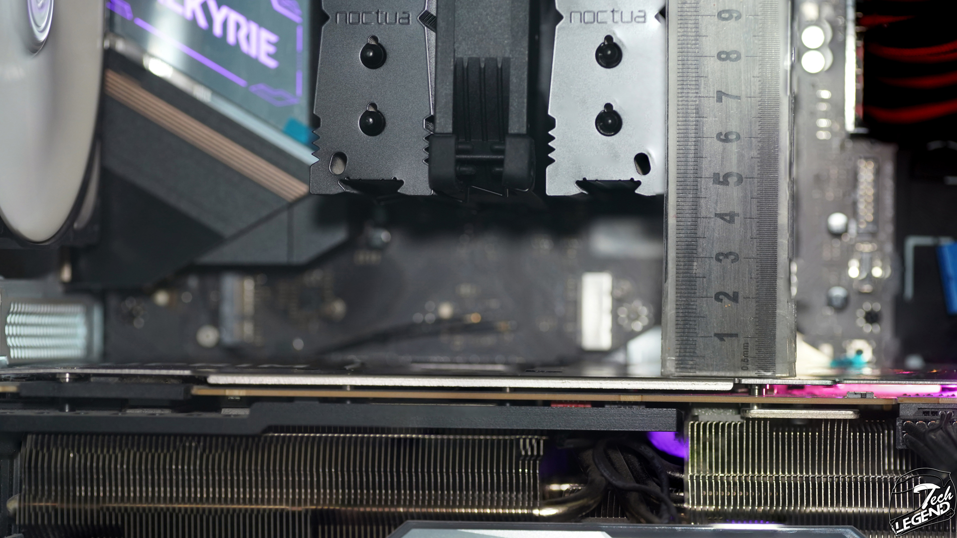 The graphics card clearance is good, with 46mm of space between the side of the heatsink and the backplate of the graphics card. Enough space to reach the M.2 socket that is underneath the CPU socket.