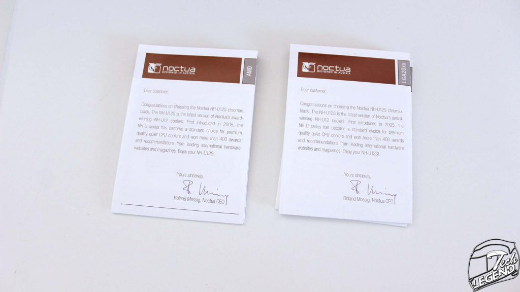 The cooler and the accessories are held in place and protected by a hard-cardboard tray that sits inside the packaging. The accessories are contained in a separate cardboard box that also serves as a tray for the installation procedure.