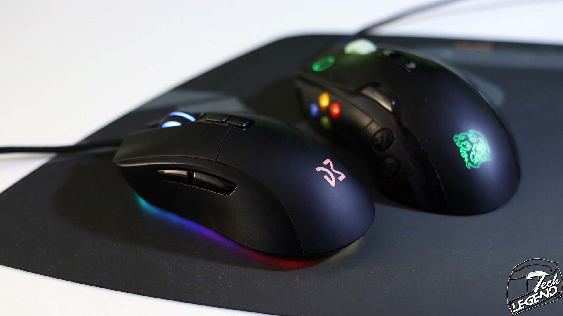 The back of the box has a similar design with the front, the main graphical element present is the RGB under glow of the mouse. The main features of the mouse are listed on the upper right corner, each feature has a small monochrome diagram that highlights its function.