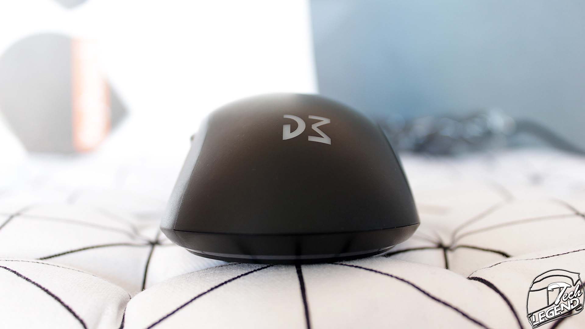 The back of the mouse further enhances the asymmetrical shape of the DM4 EVO shell. The RGB emblem itself is not centered on the mouse.
