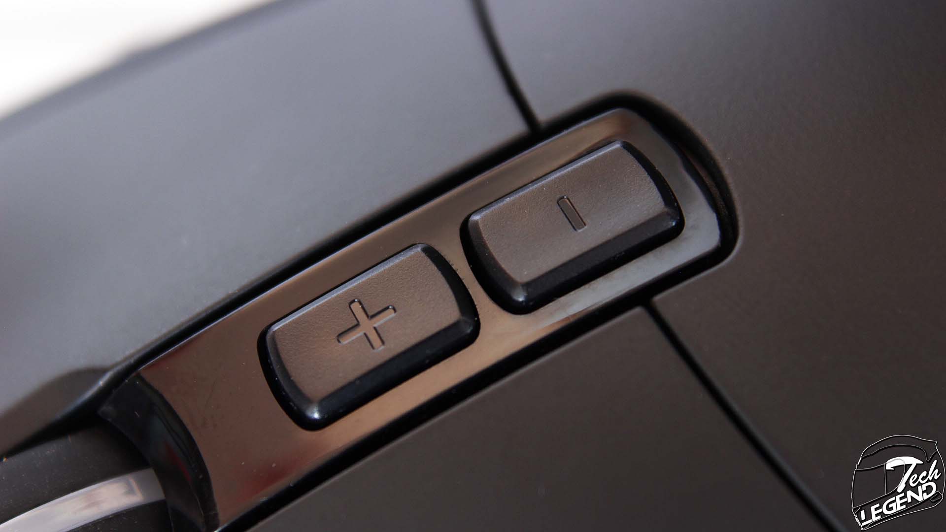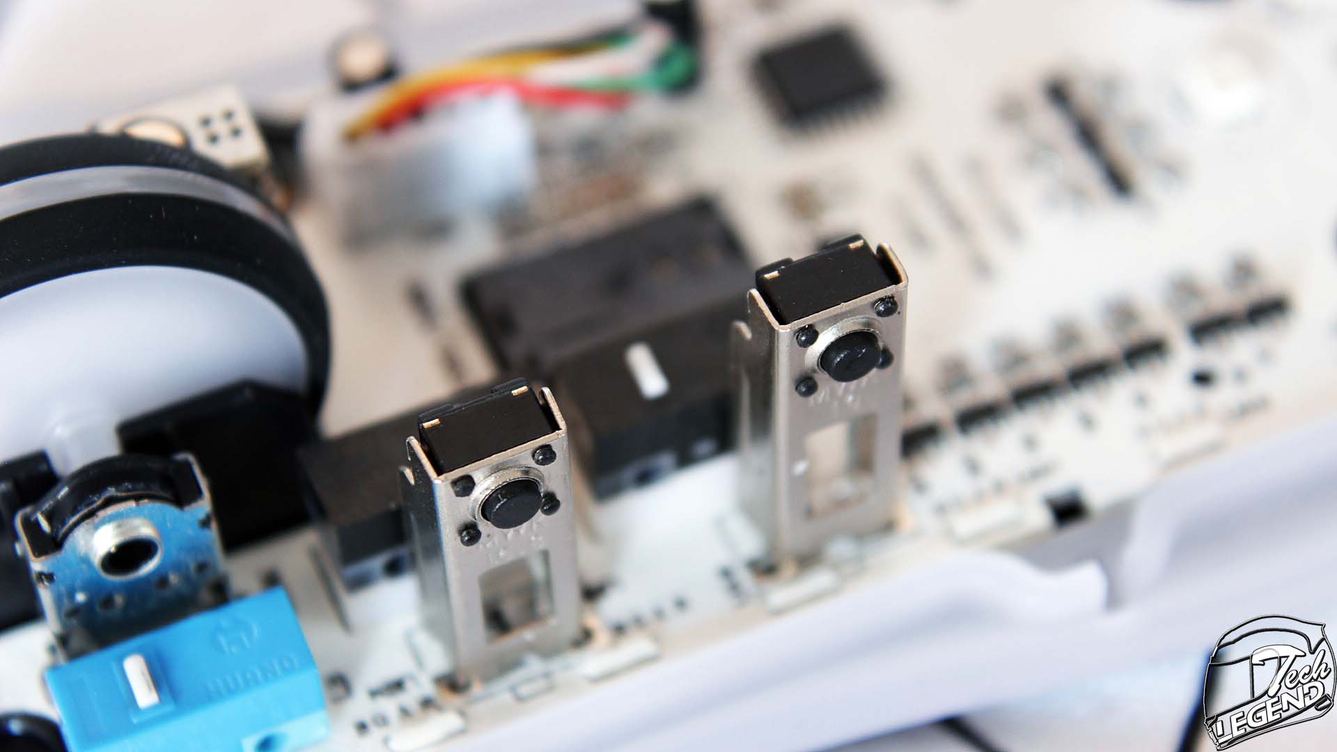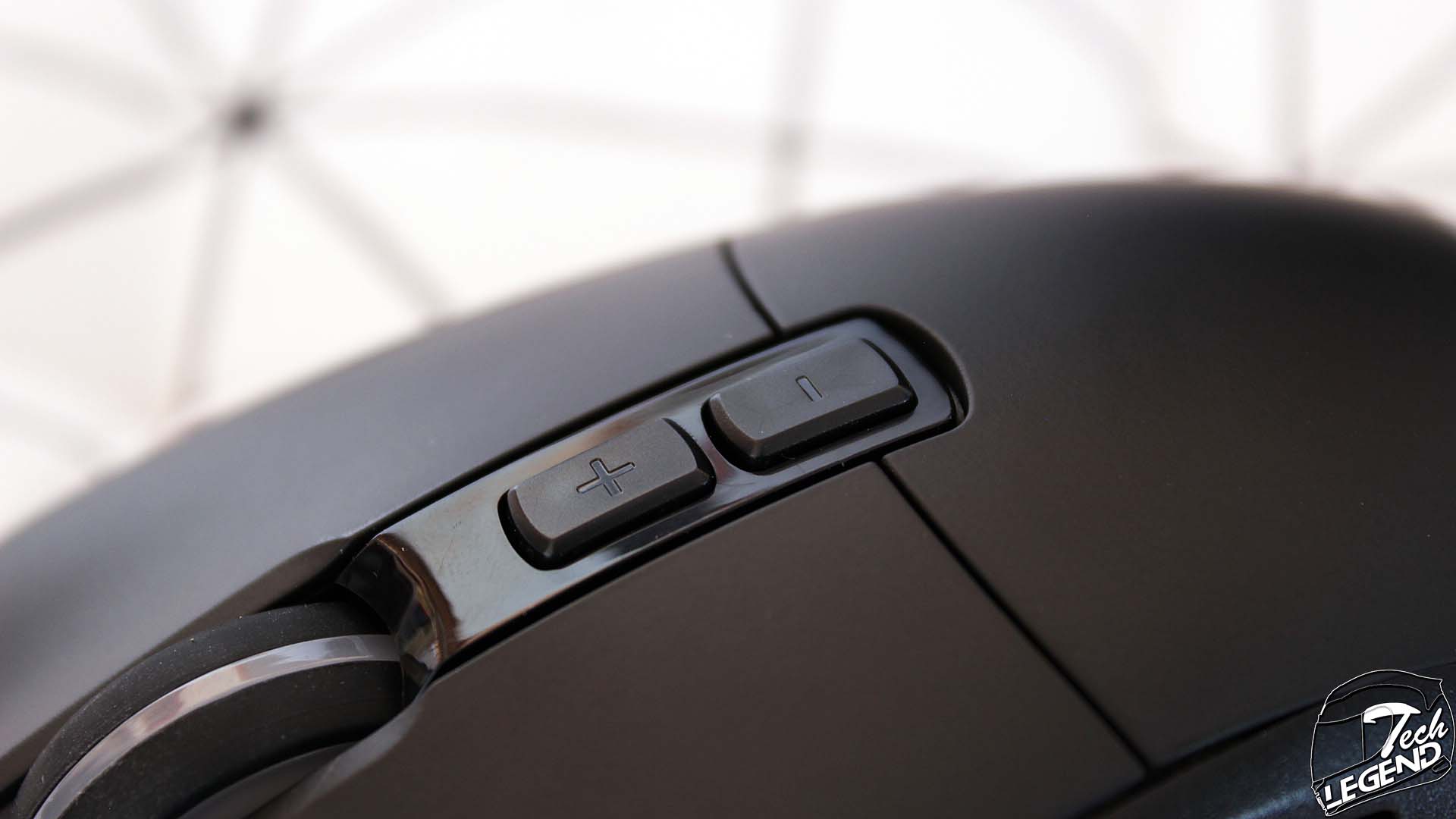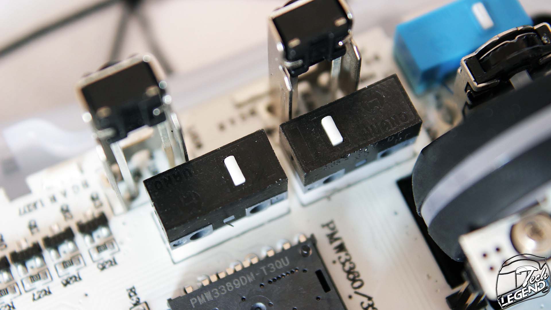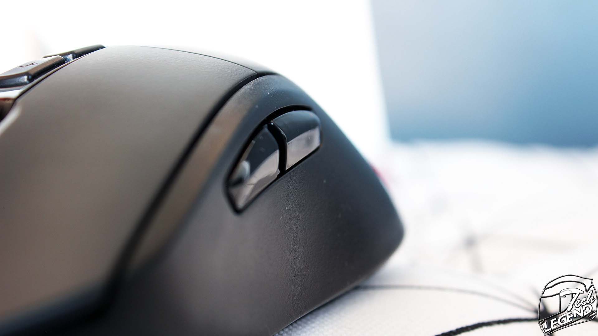 Above the scroll wheel and in the middle of the mouse there are two buttons that cycle the profile and DPI values stored within the mouse memory. These buttons also use Huano made switches, the same Huano black switch used with the scroll wheel.