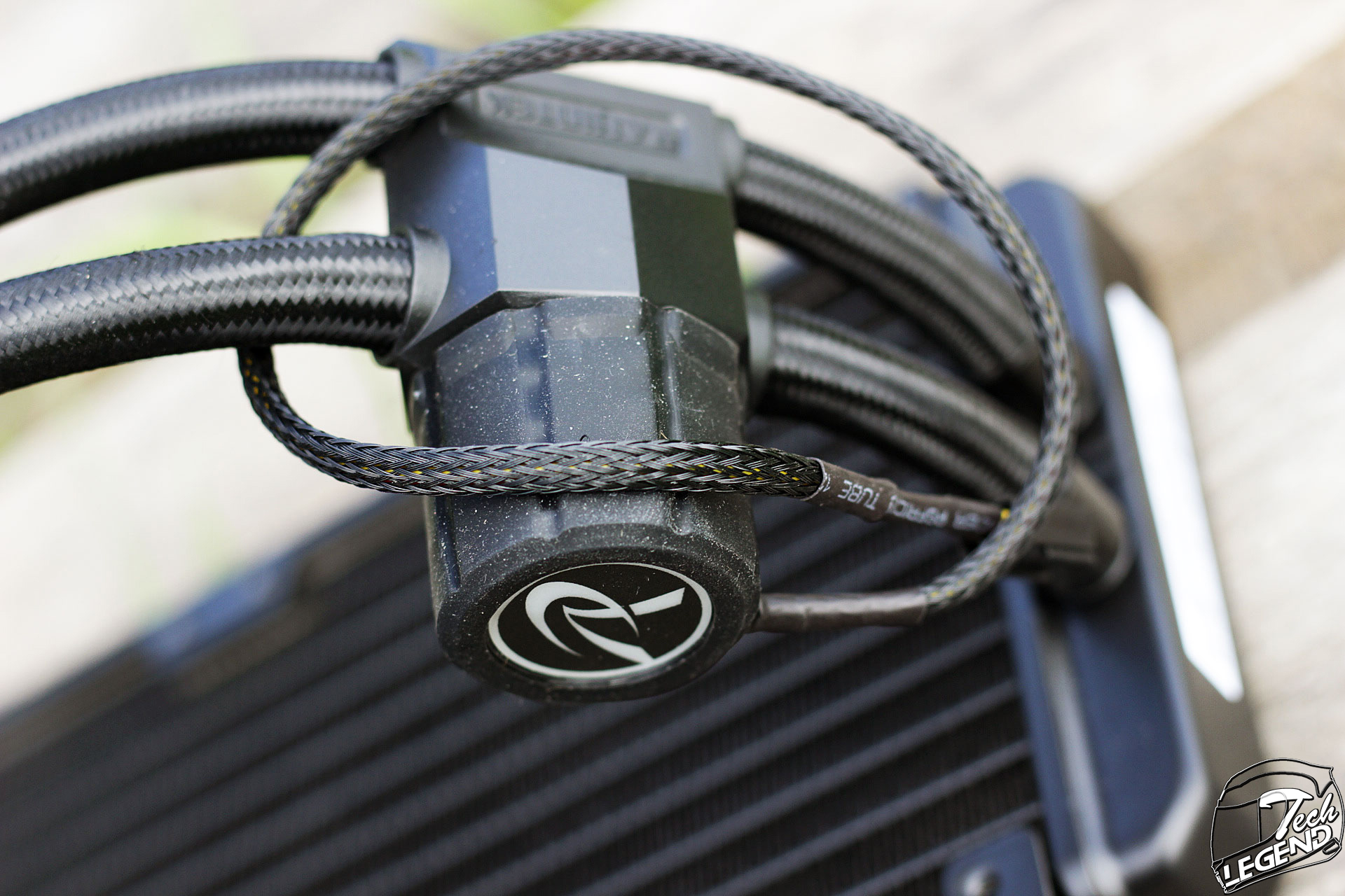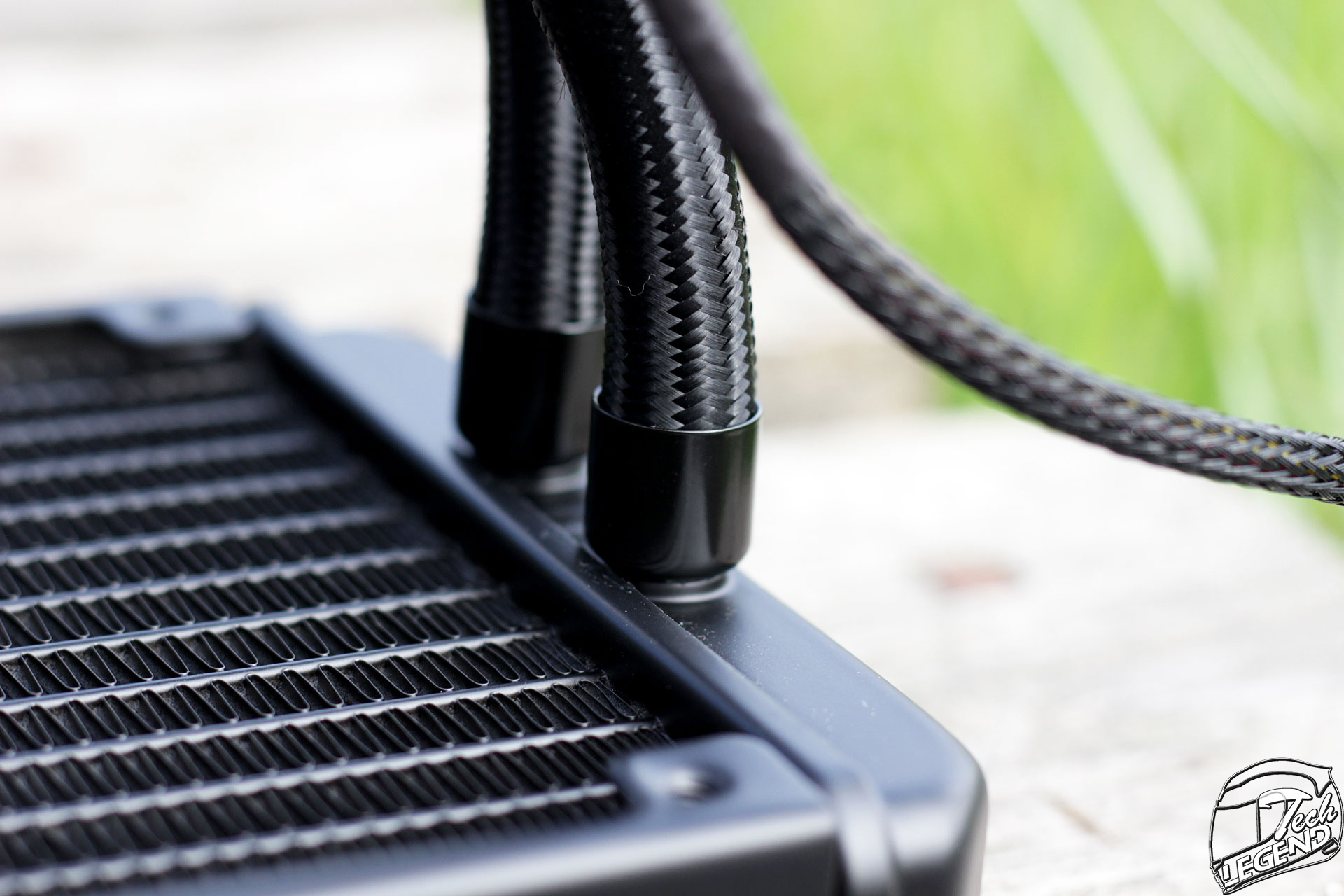The two tubes of the cooler connect to the CPU block through a pair of angled fittings. These fittings are made out of plastic and fortunately, can swivel to accommodate the position of the tubes once the cooler is installed.