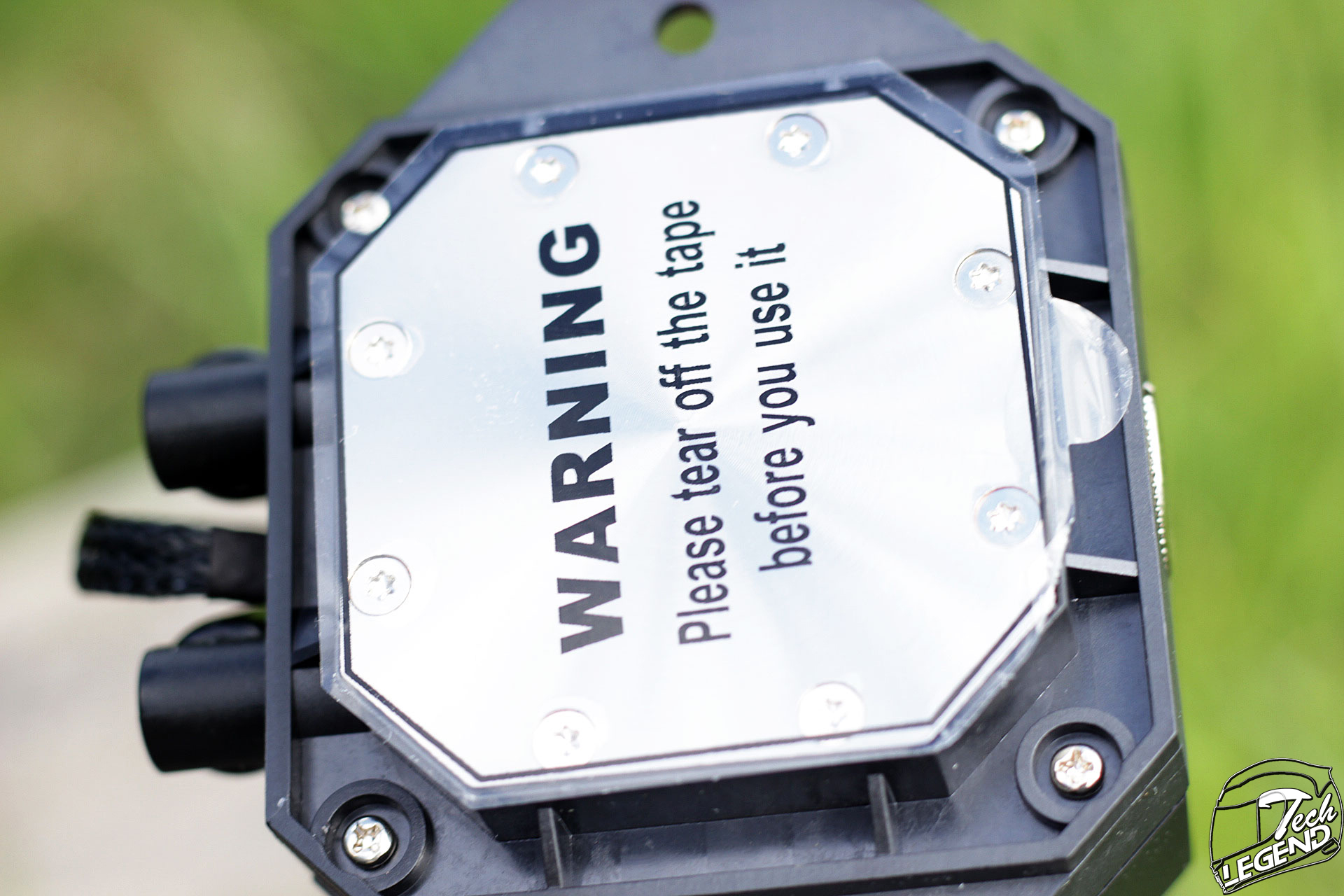 The CPU block is made mostly out of plastic, and this includes the body and the top clear panel. Speaking of which, the highlight in terms of the design of the CPU block is at the front. The white star placed inside the block is in fact a flow meter for the cooling liquid inside the CPU cooler. These types of flow meters are used in custom liquid cooling systems to offer an easy to see indicator of flow. This flow meter can be illuminated by RGB LEDs which are installed inside the CPU block.