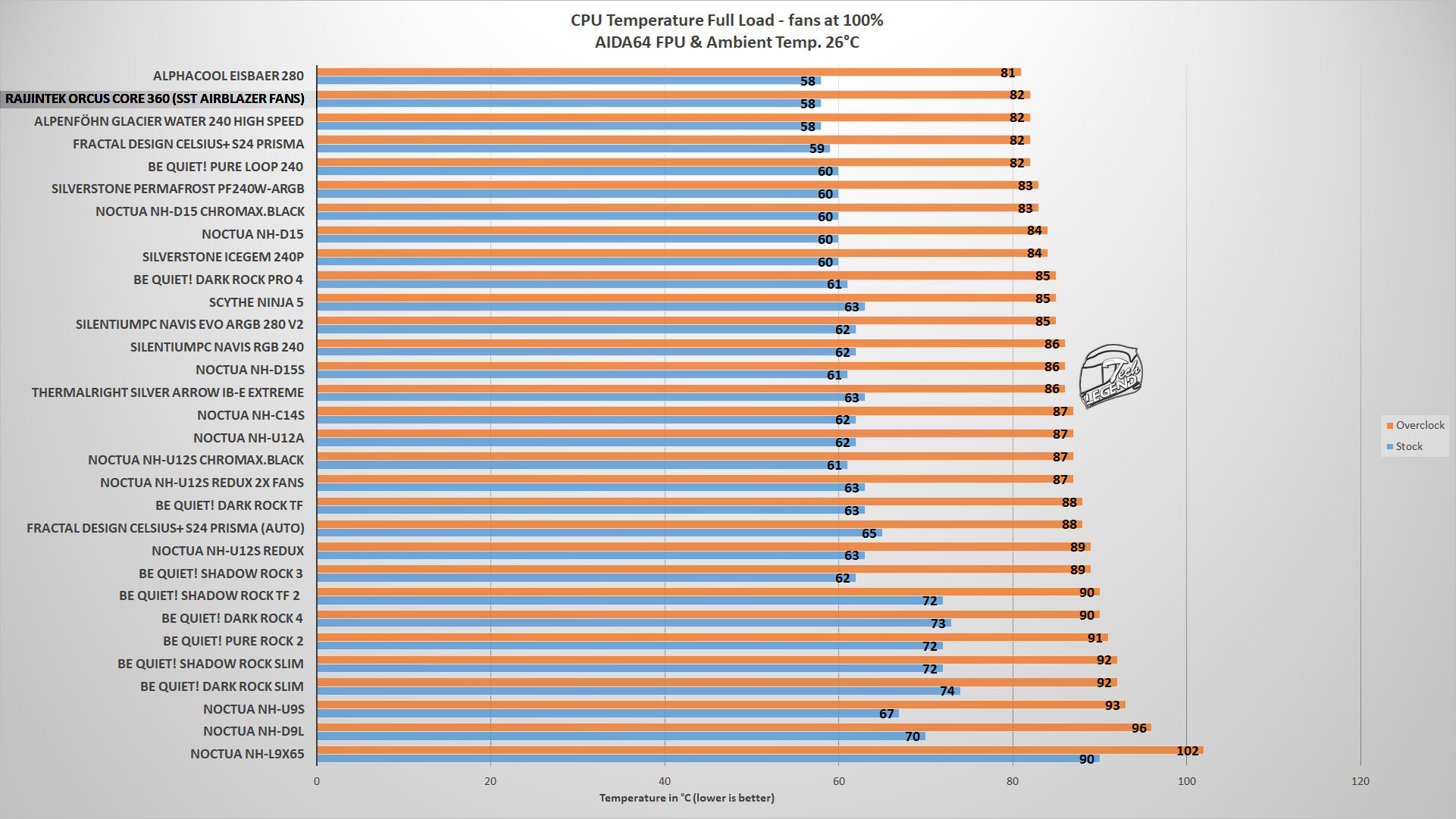 The performance of the Orcus Core 360 is great, the inline pump is silent and delivers a good flow around the system. However, as I’ve said previously, with the Core series, it all comes down to what fans are being used. Either high speed fans with a higher noise output or low speed but worse performing.