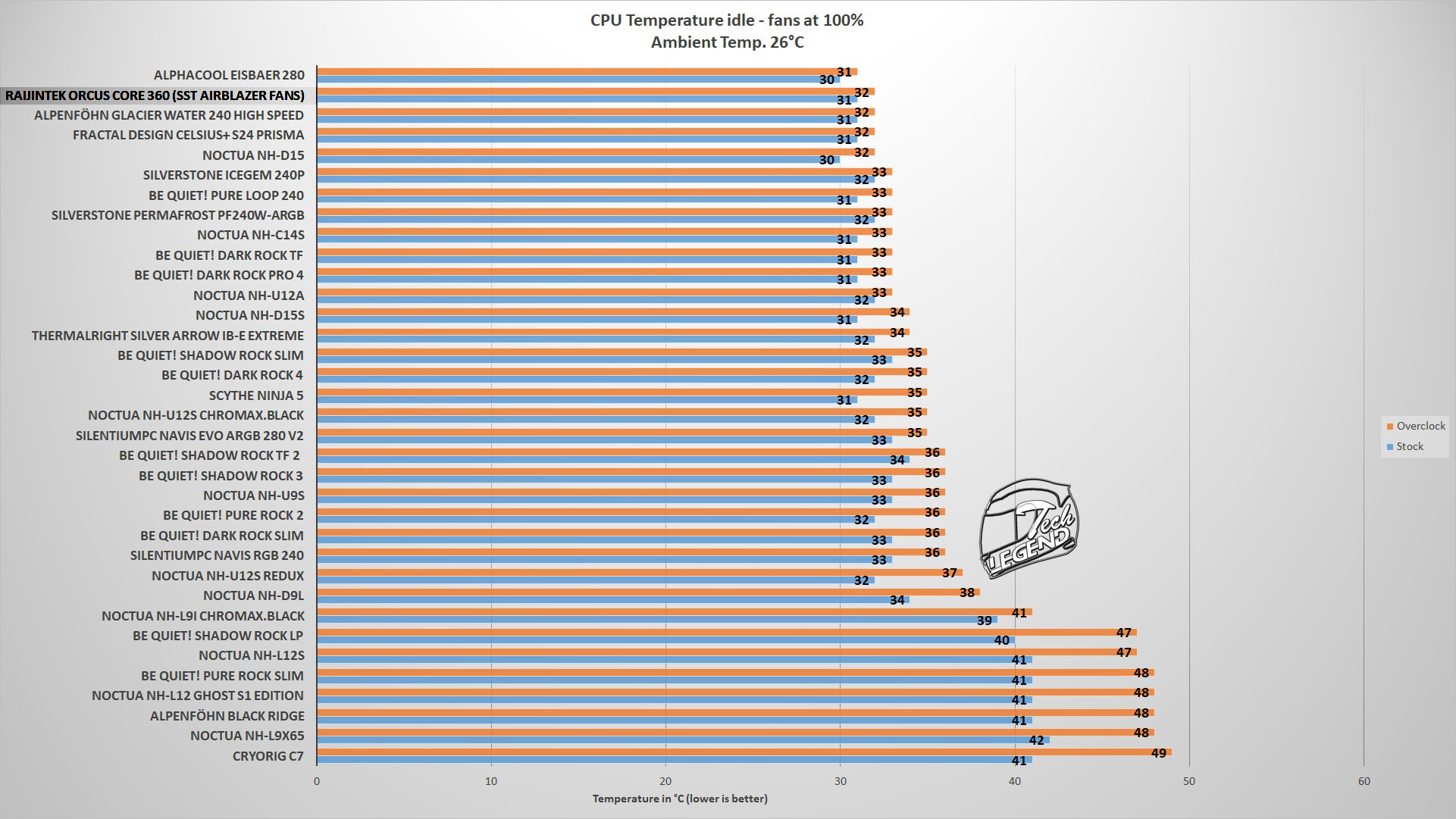 The idle test consists of the CPU sitting idle at the desktop for 30 minutes, the temperature was measured at the end of the test.
