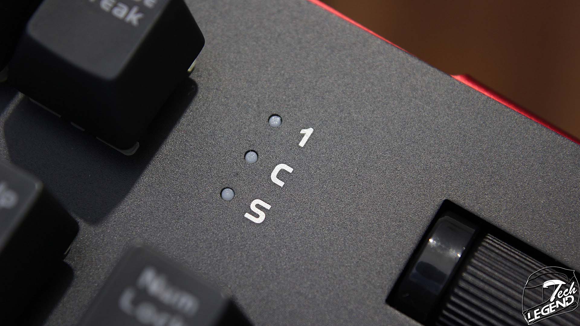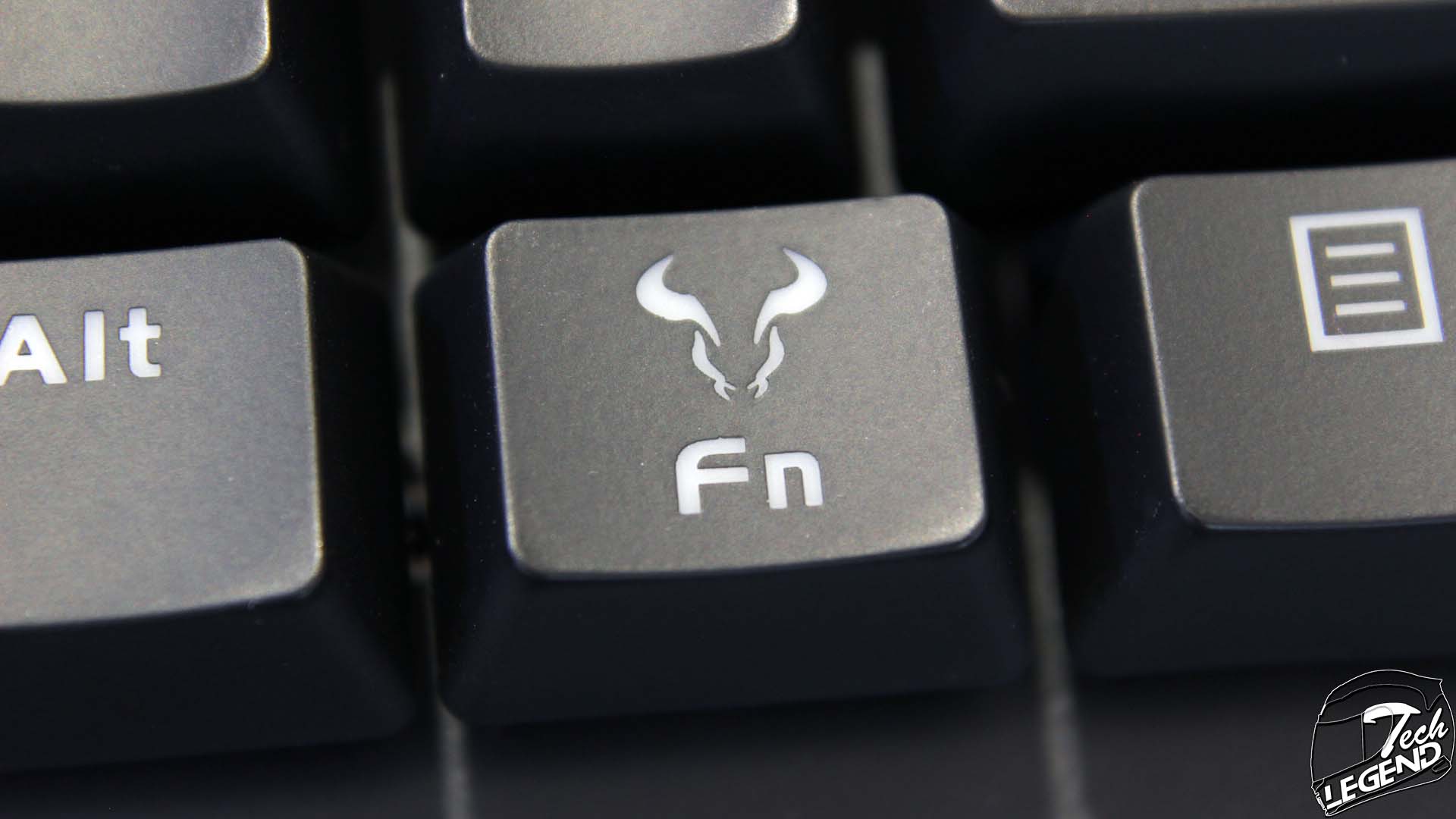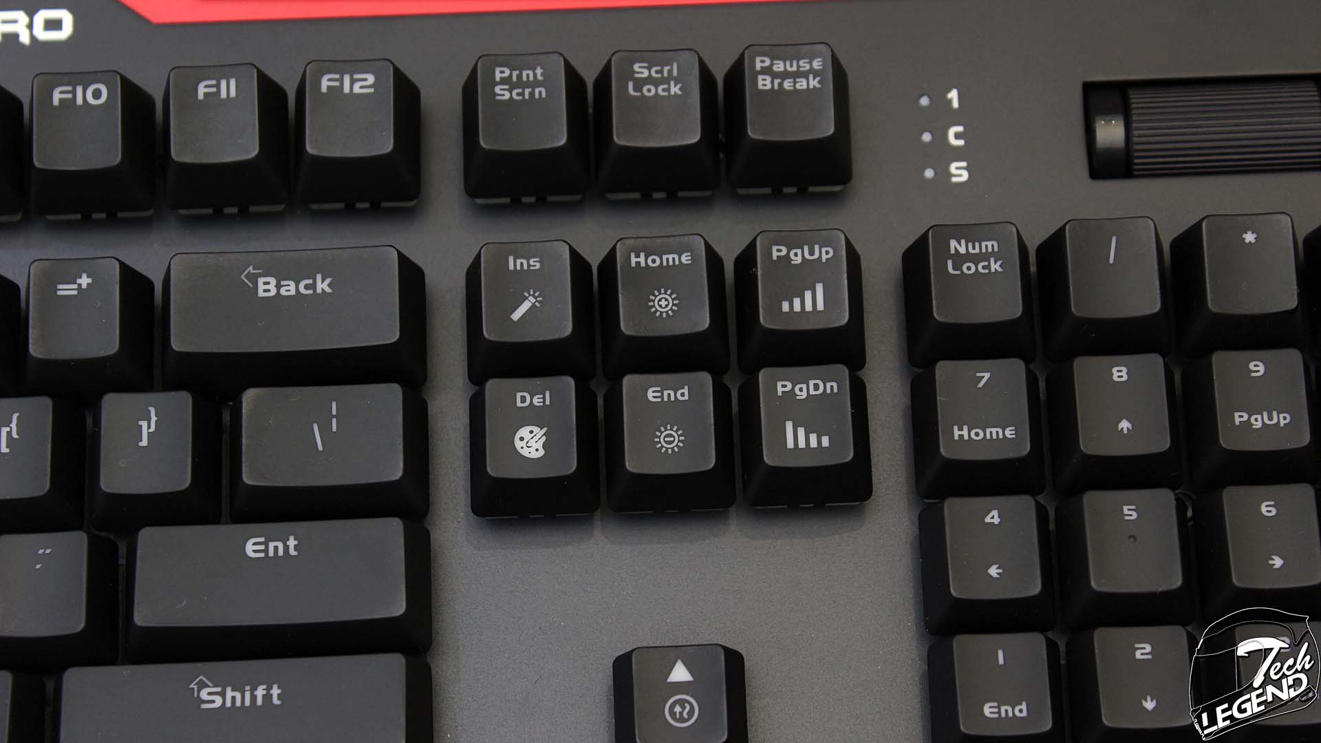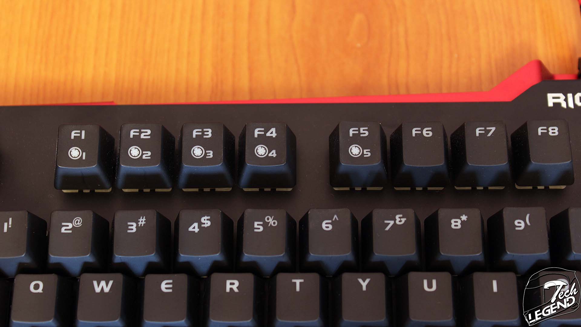 The media functions are integrated into other keys, the F row to be specific. From F1 through to F5, pressed at the same time as the FN key, these activate the custom profiles you can create within the software. The rest of the functions are integrated into the keys above the arrow keys. Here you can control both the lightning colors and the patterns preconfigured.