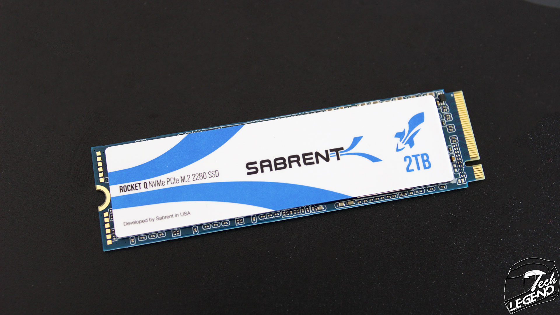 The Sabrent Rocket Q 2TB has a basic design, with the PCB having a regular light blue color. The front of the SSD is covered by a white label that also has subtle light blue accents, this design matches the packaging and other Sabrent products.