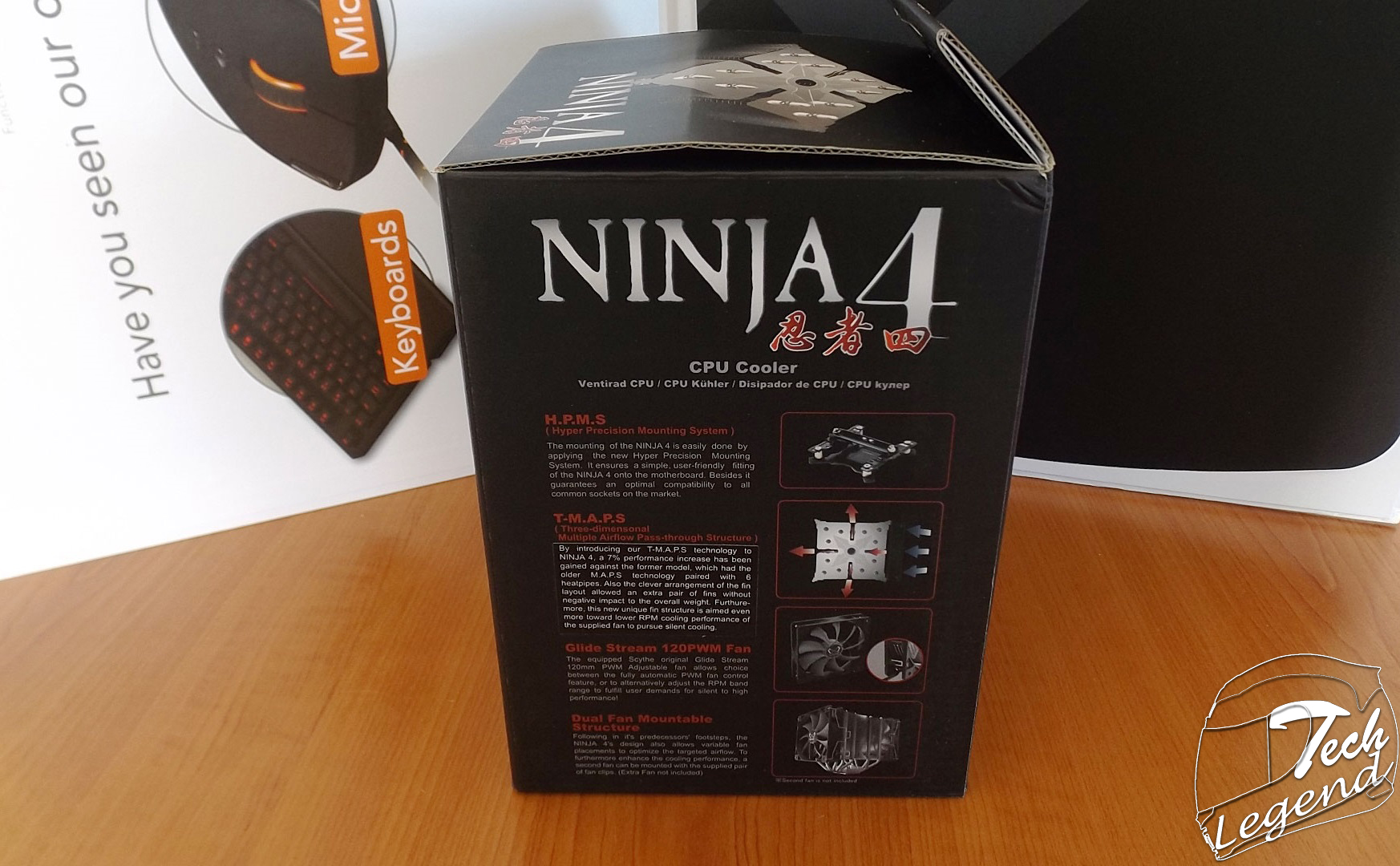 Three-dimensional Multiple Airflow Pass-through Structure: By introducing our new T-M.A.P.S technology for the Ninja 4, we were able to increase the cooling capacity compared to previous models based on the older M.A.P.S lamellar structure. The clever arrangement of the cooling fins allows the usage of an additional pair of fins without suffering negative effects to weight or height of the heatsink and optimizes the cooling power in the lower speed range of the supplied fan.