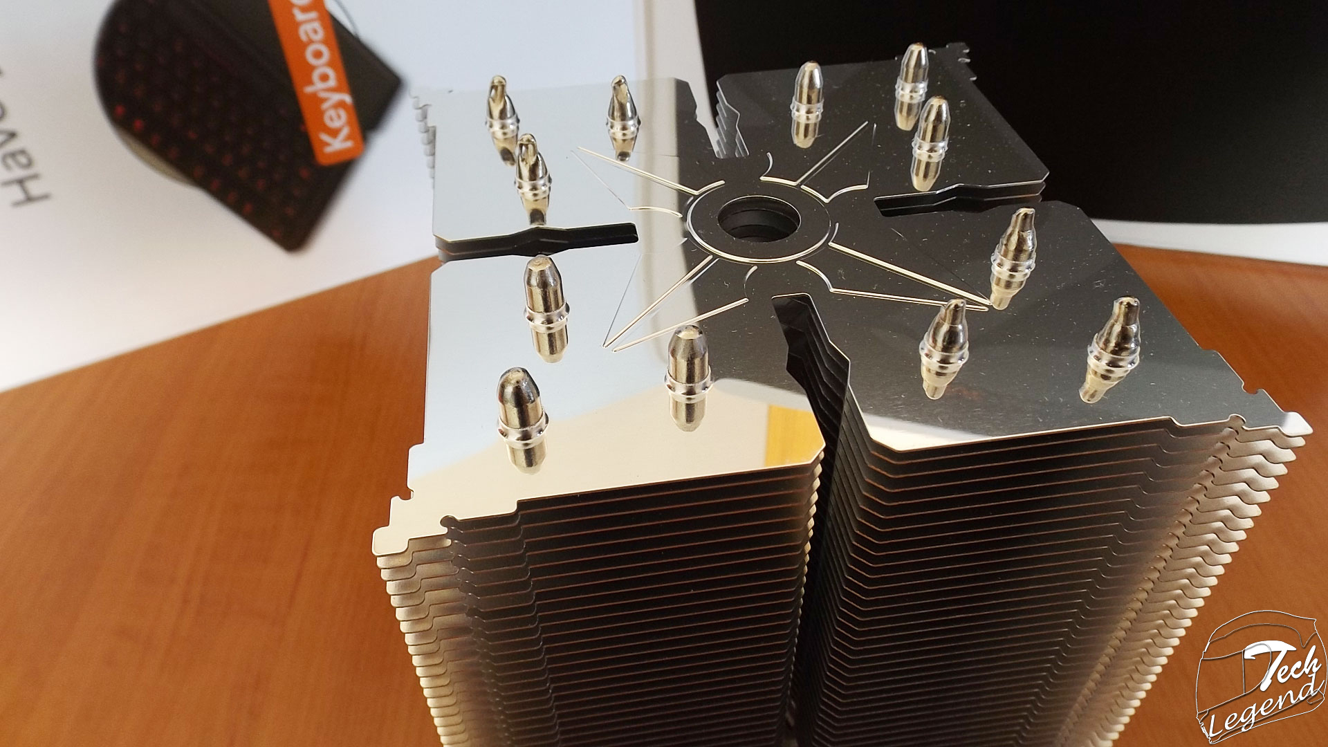 The 6 heatpipes are made out of nickel-plated copper, the base of the cooler is also made out of nickel-plated copper. The build quality and materials used are exceptional.