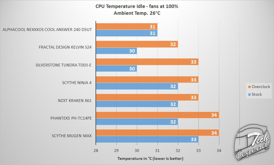The idle test consists of the CPU sitting idle at the desktop for 30 minutes, the temperature was measured at the end of the test.