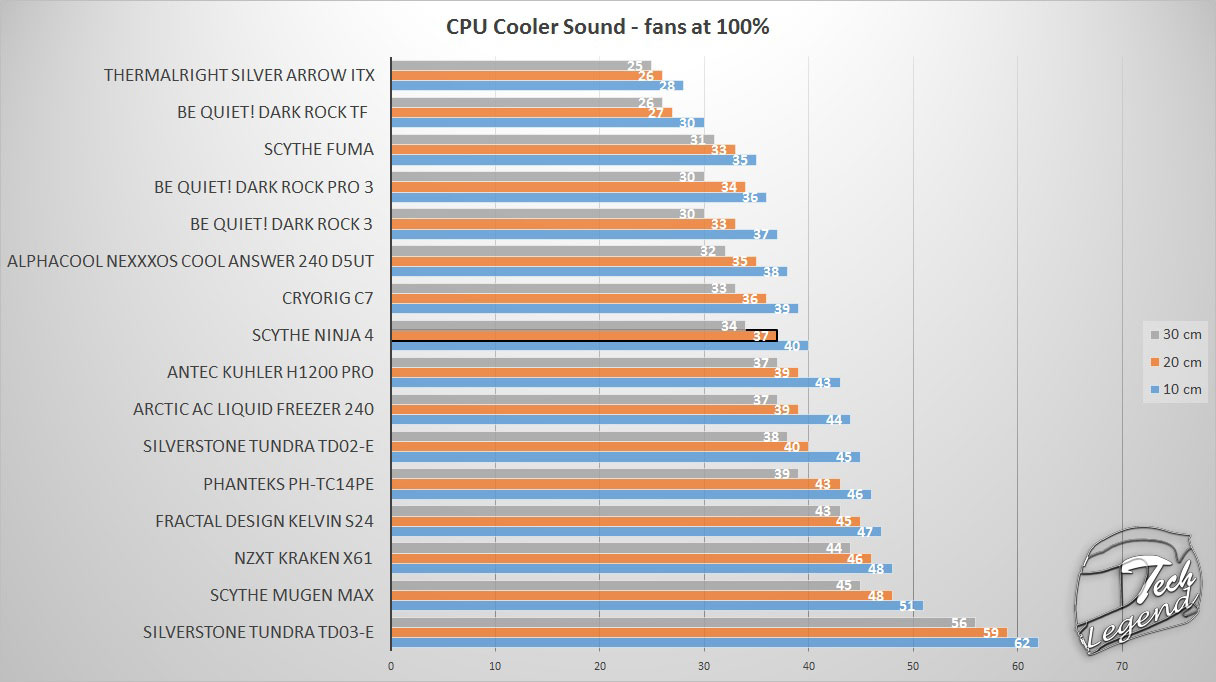 The noise level was measured at three different distances from the fans (10cm, 20cm, 30cm.) the noise was measured with a margin of error of ± 5 db.