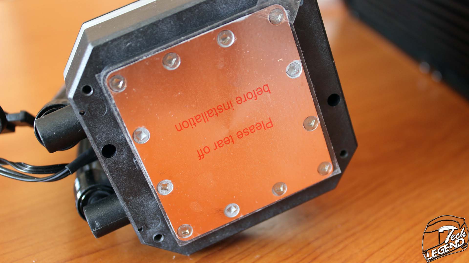The CPU block is connected to the tubes of the cooler with plastic angled fittings that can also swivel.