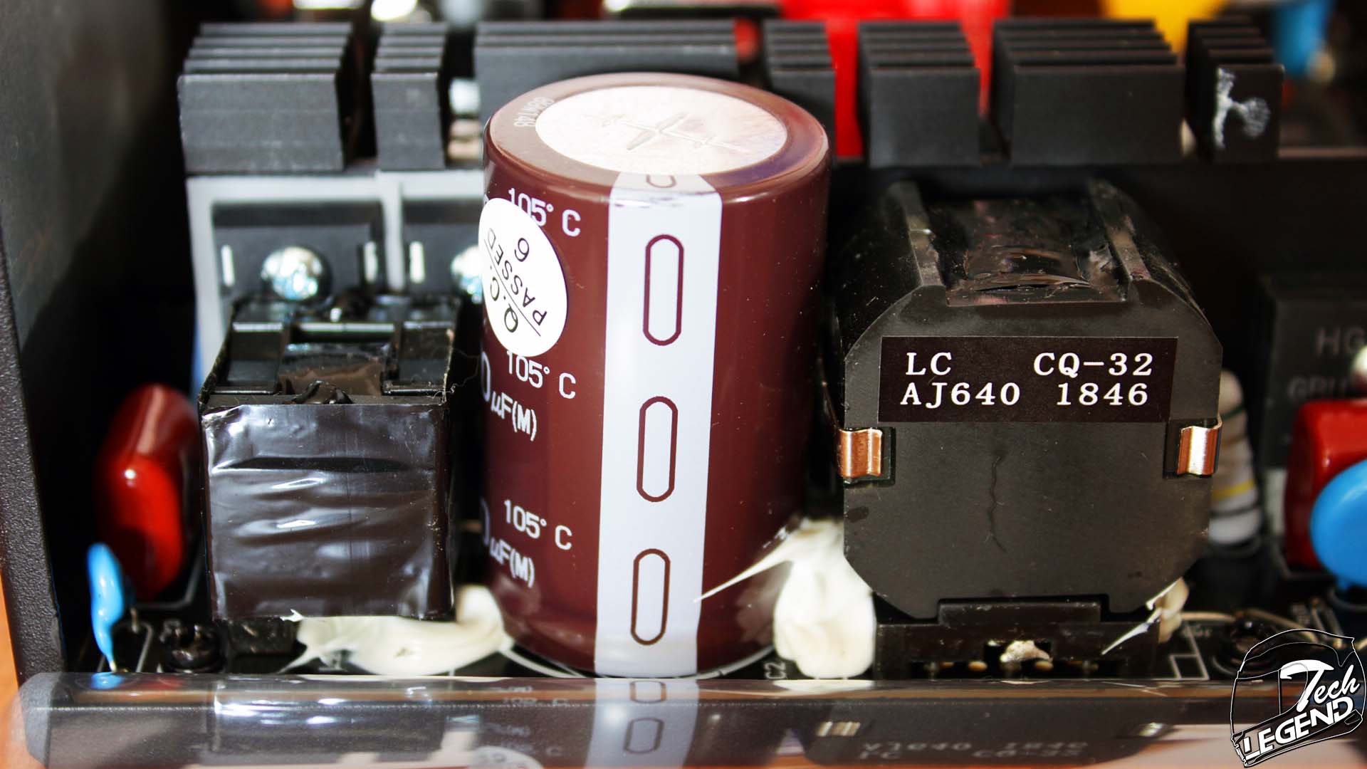 The APFC section features a single capacitor made by Nippon Chemi-Con, the specifications of this capacitor are: 560uF/450v with a maximum operating temperature of 105°C.