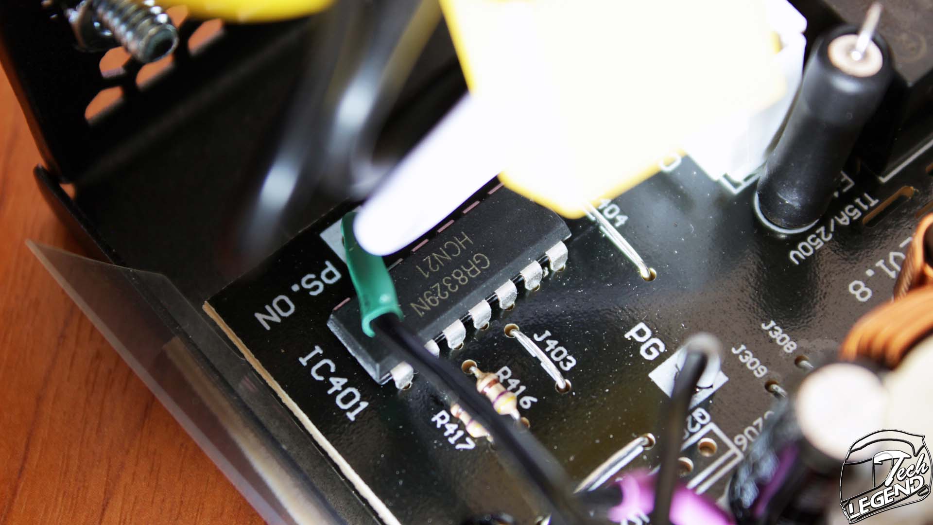 The 4-Channel Supervisor IC used on this power supply is the GR8329N, manufactured by Grenergy. This chip is designed to monitor the outputs of the power supply, while also being responsible for the protections of the unit.