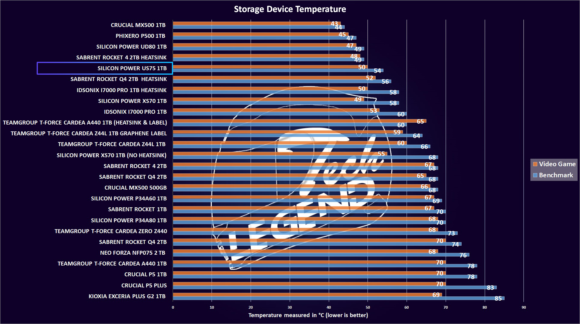 When it comes down to temperature, each SSD is different and the same can be said for its behavior as the temperature of an M.2 SSD is bound by the controller used and its thermal efficiency. In this case, the Silicon Power US75 1TB barely reached 54 degrees Celsius under a full load benchmark, which is great to see as this makes this SSD ideal for notebook usage and even gaming consoles.